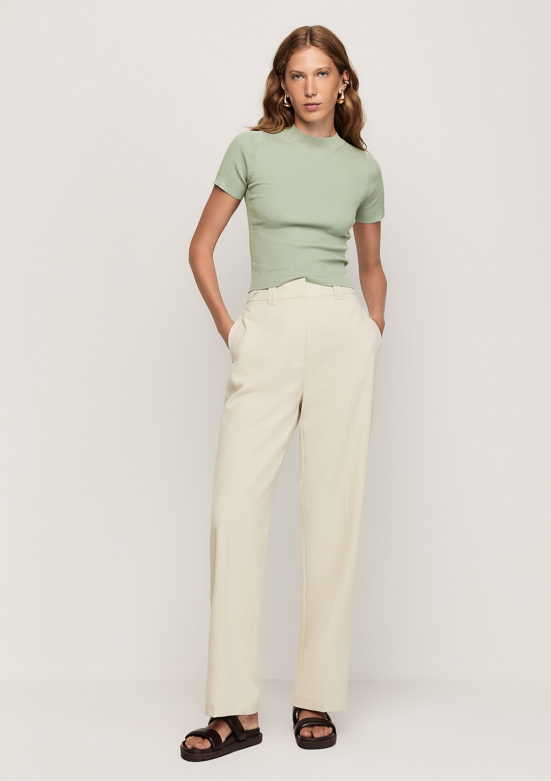 Calça Alfaiataria Texturizada com Cintura Alta - Off white