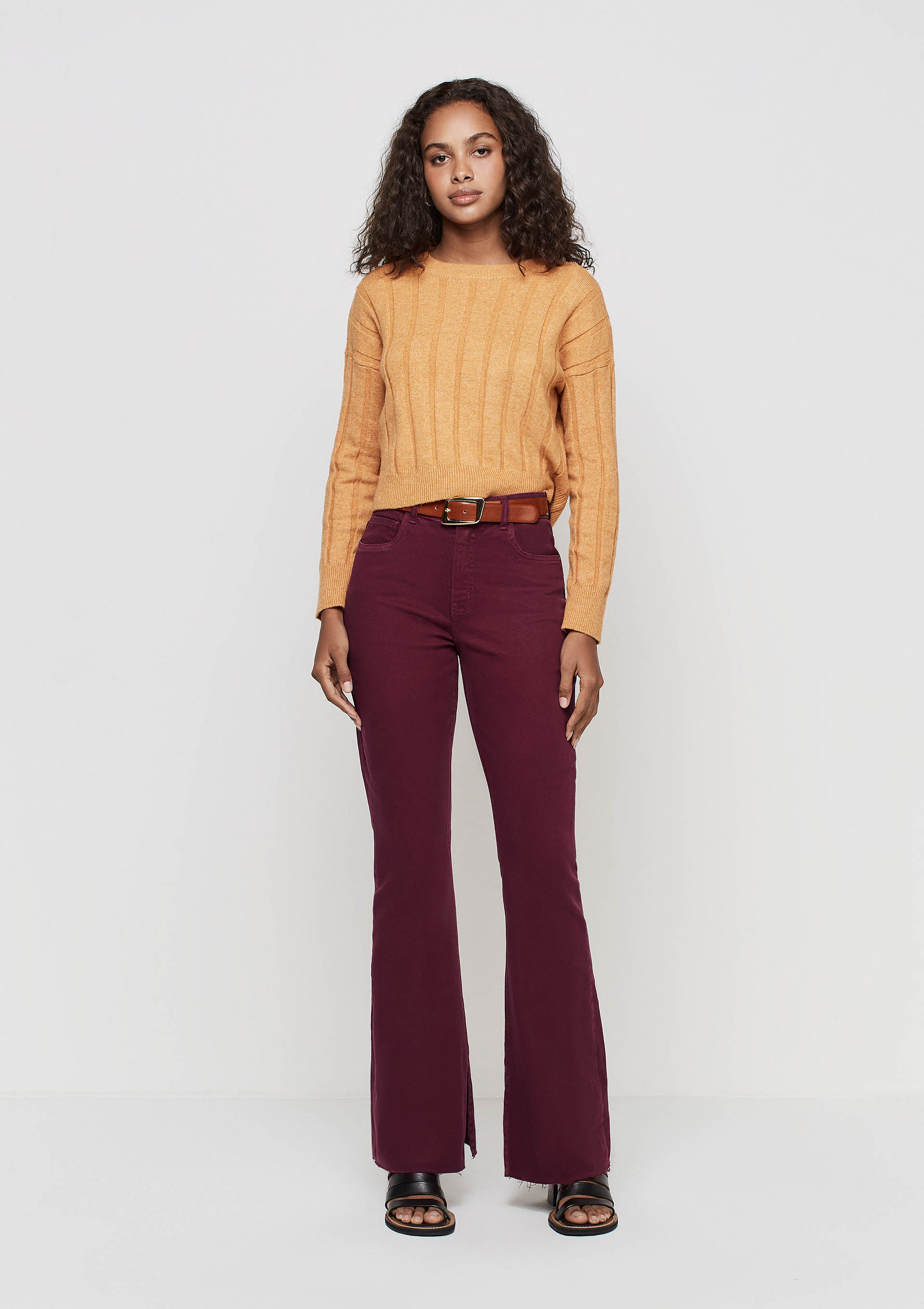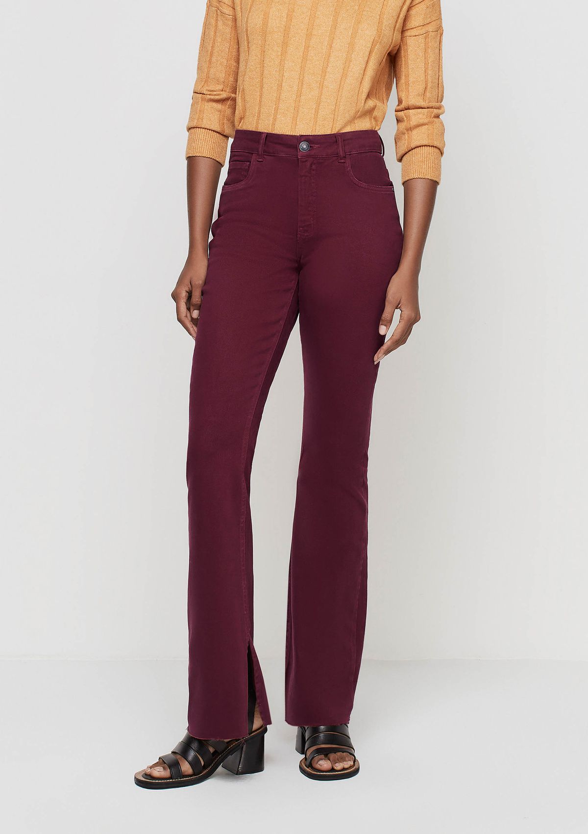Calça Flare Slim Cintura Média Em Sarja - Burgundy