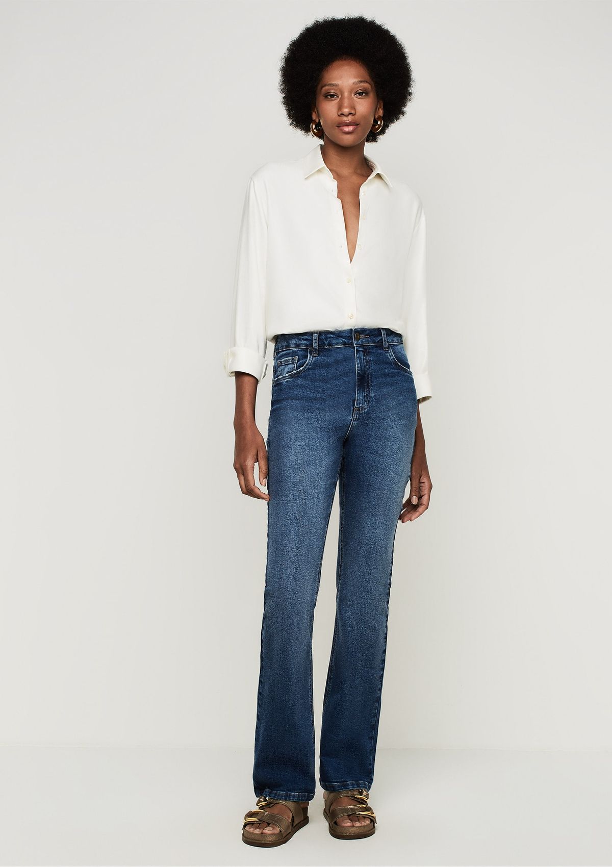 Calça Jeans Bootcut Cintura Alta Com Elastano - Azul