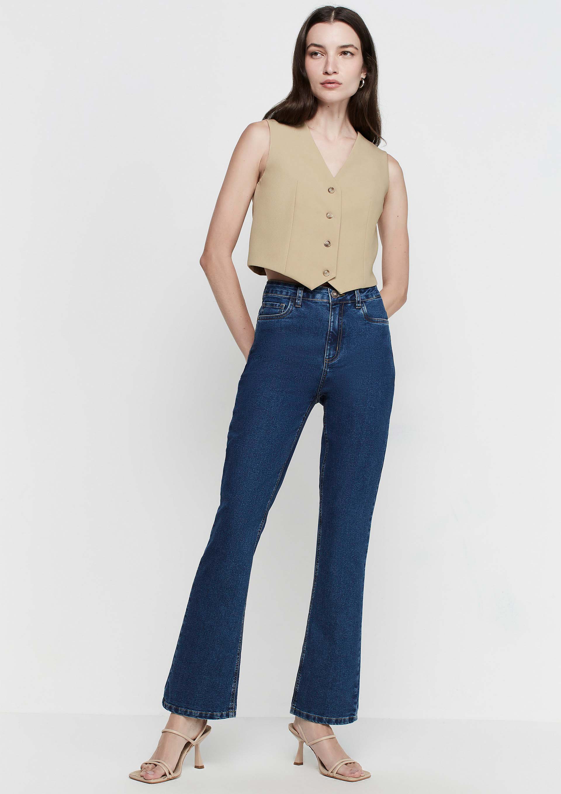 Calça Jeans Bootcut Petit Cintura Alta - Azul
