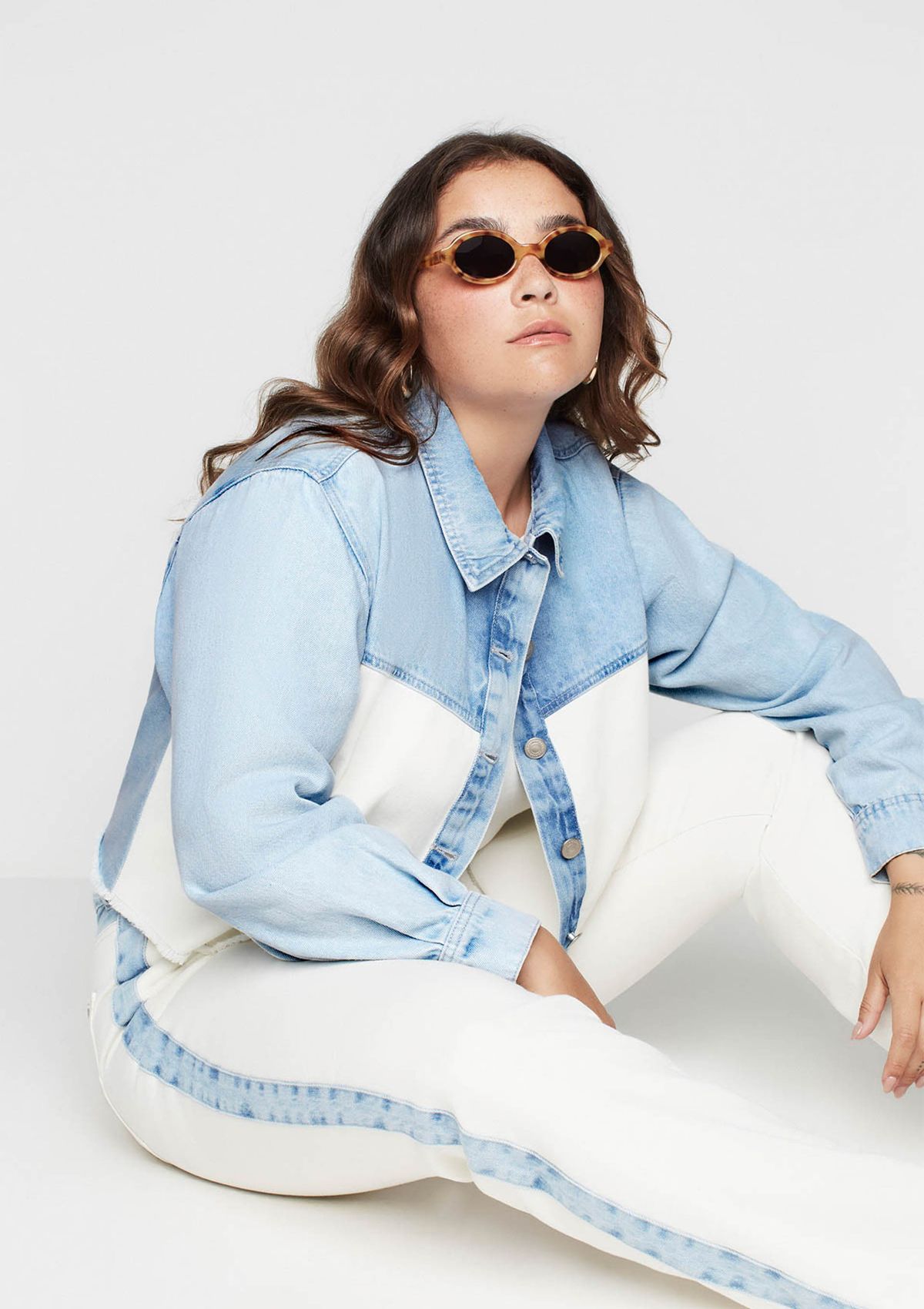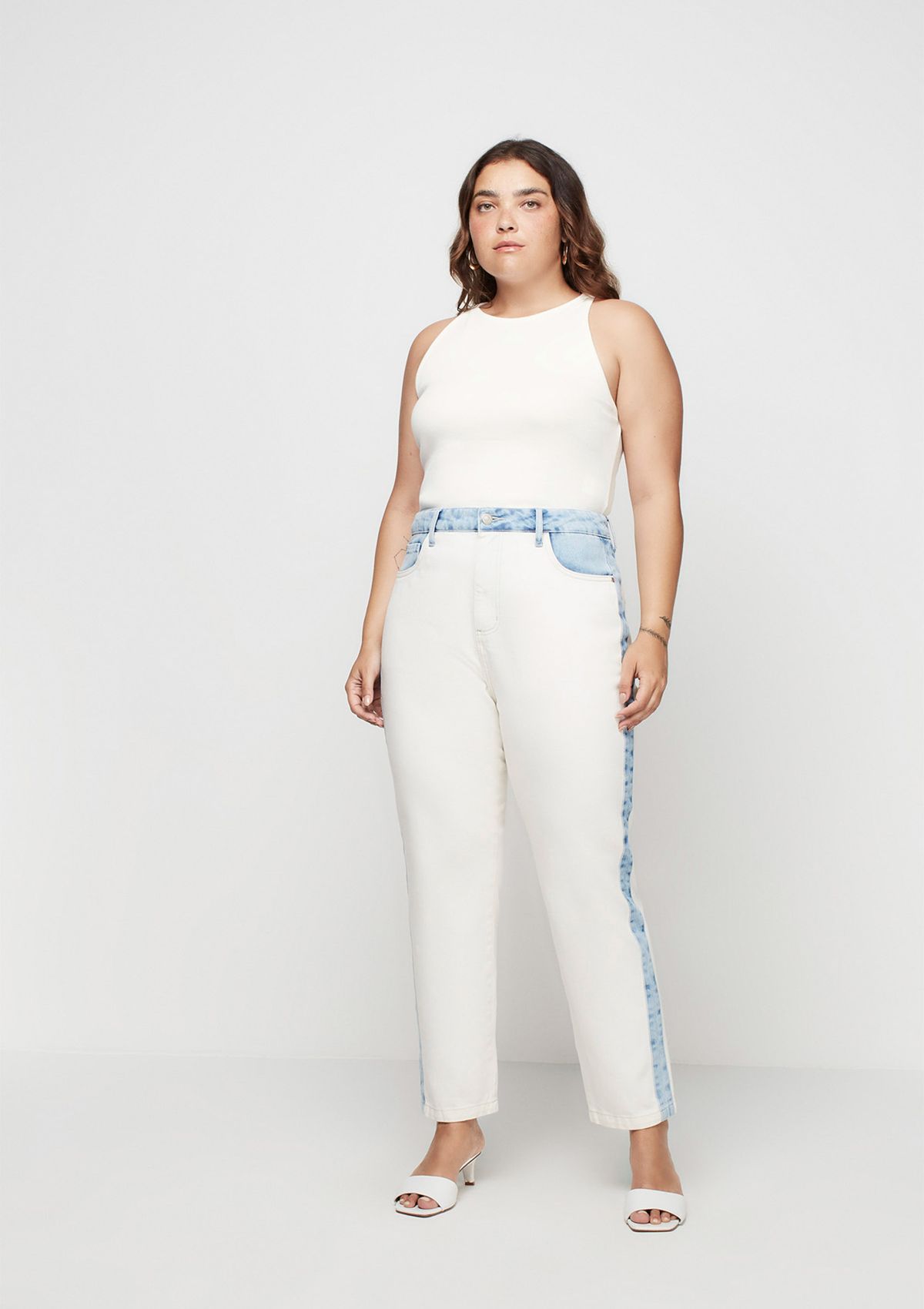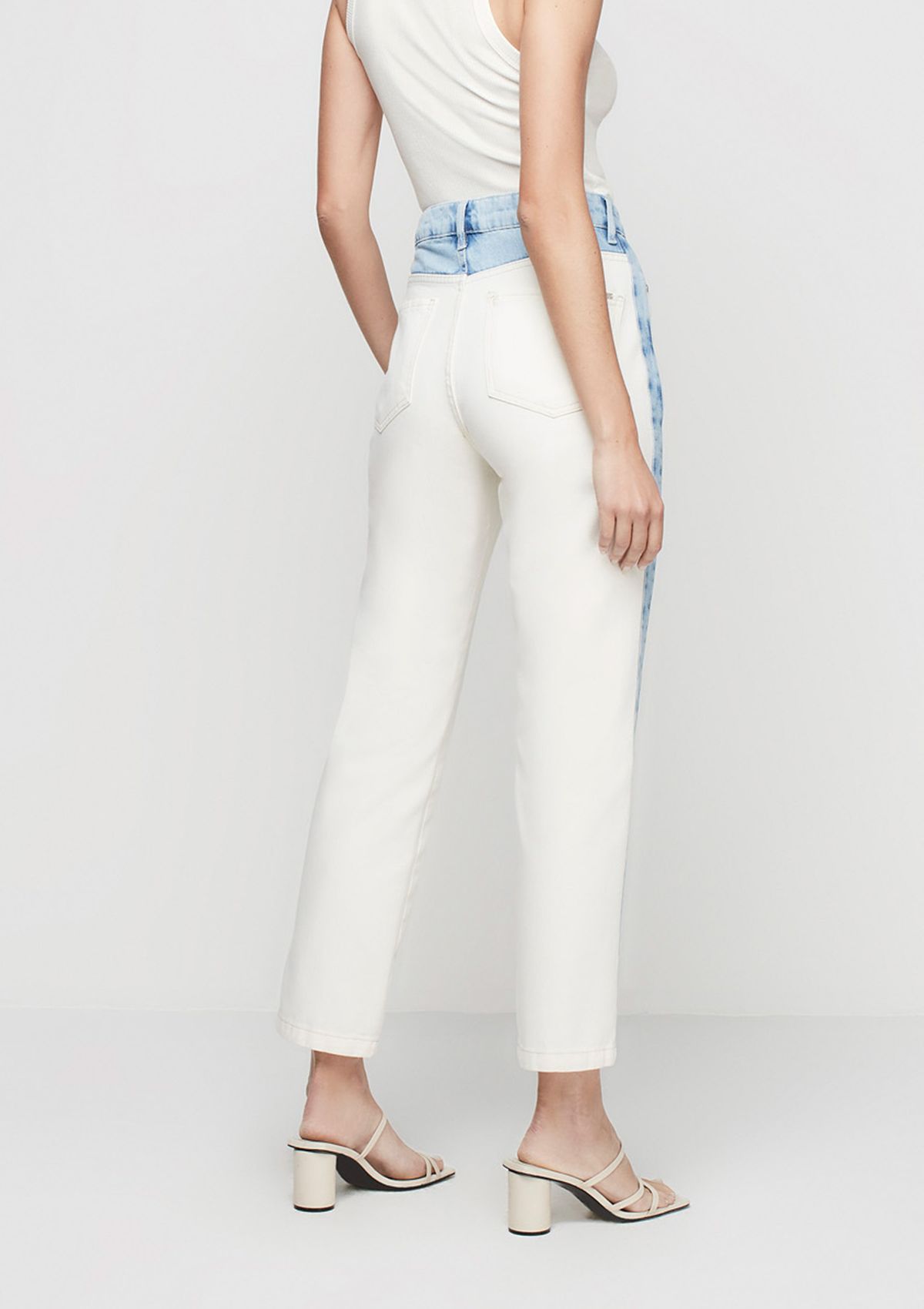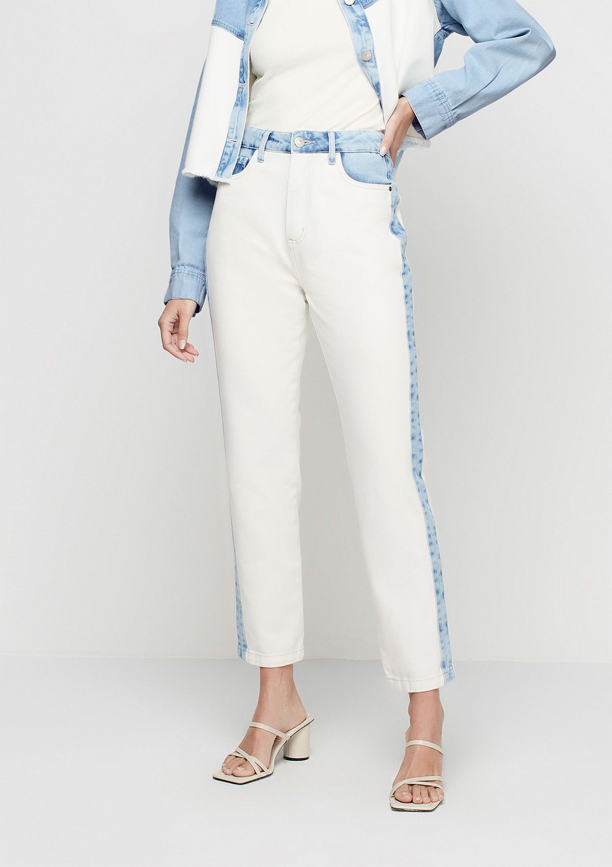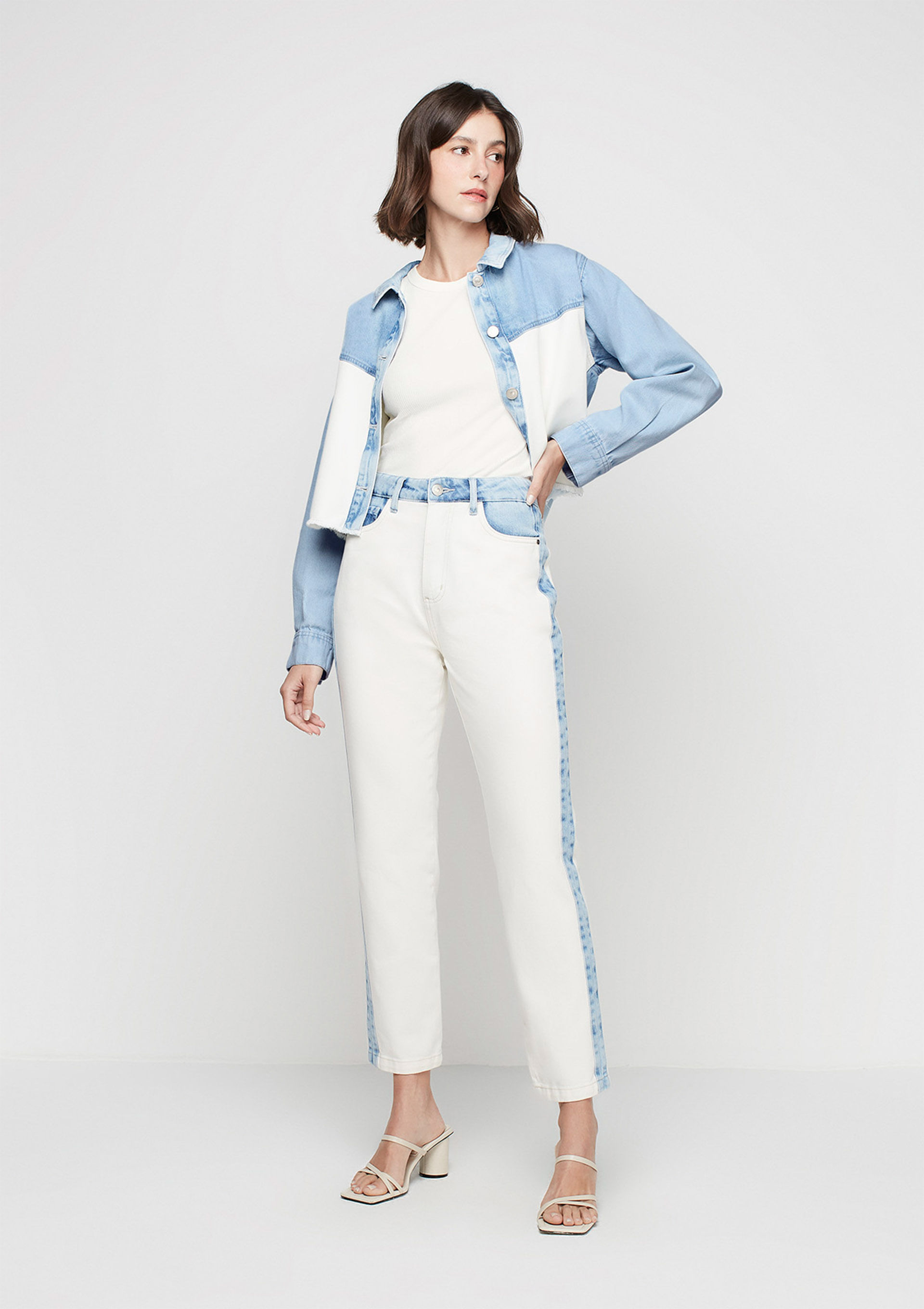 Calça Jeans Reta Cintura Alta E-co2 Denim Bicolor - Azul