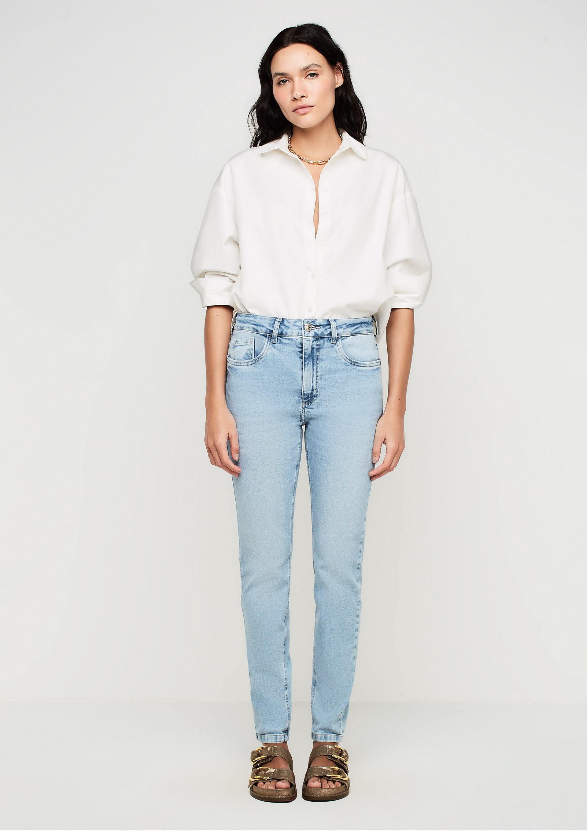 Calça Jeans Skinny Cintura Alta Com Elastano - Azul