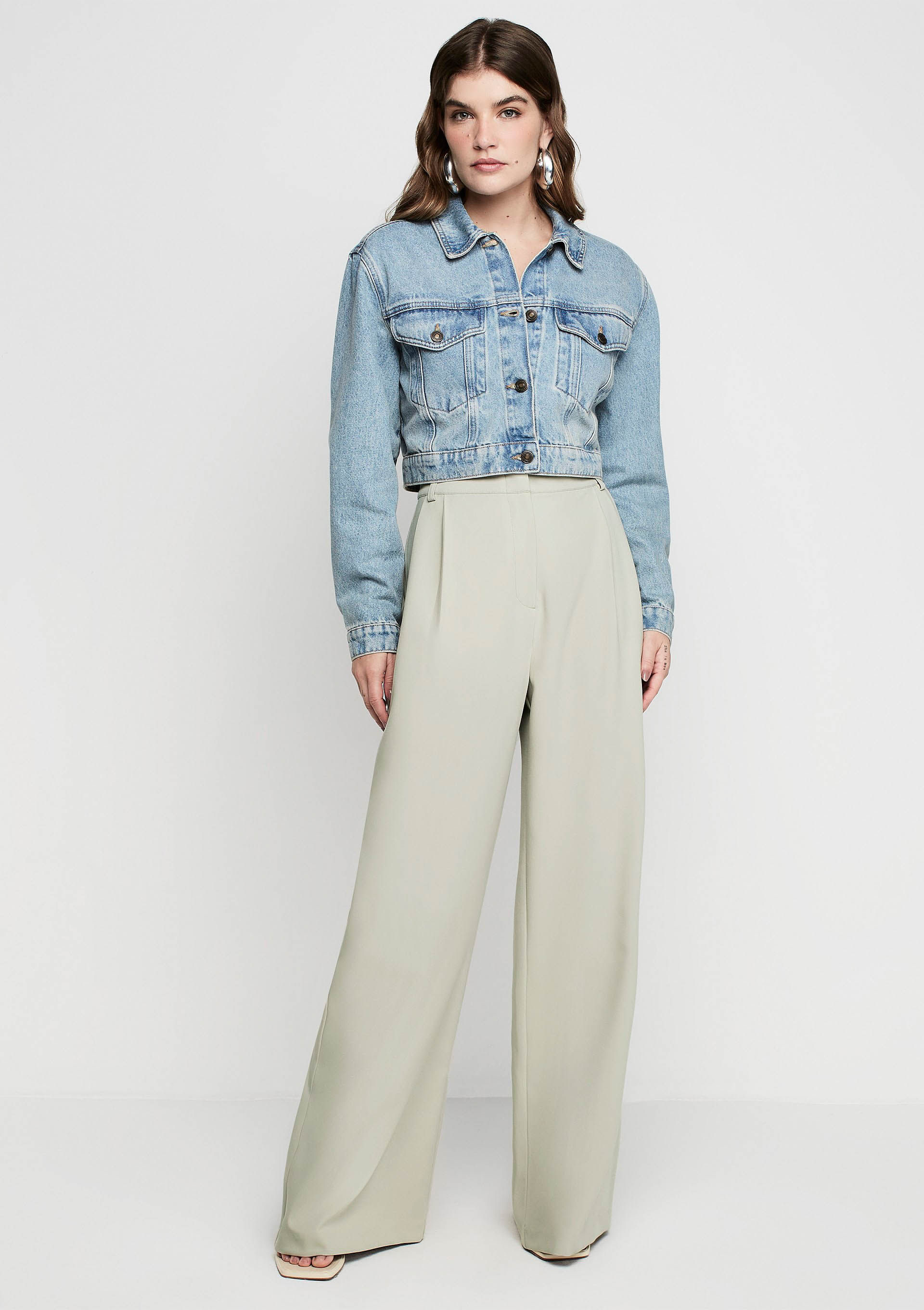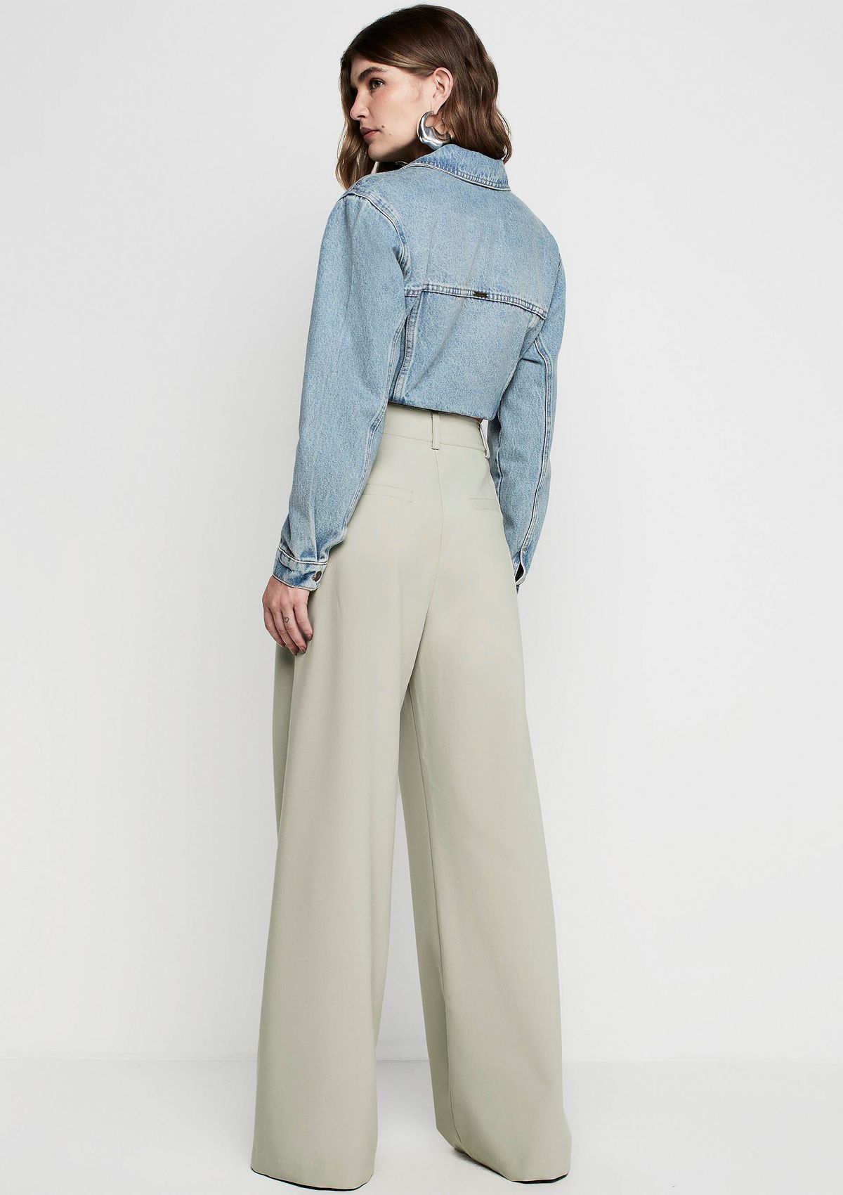 Calça Pantalona Cintura Alta Em Alfaiataria - Verde