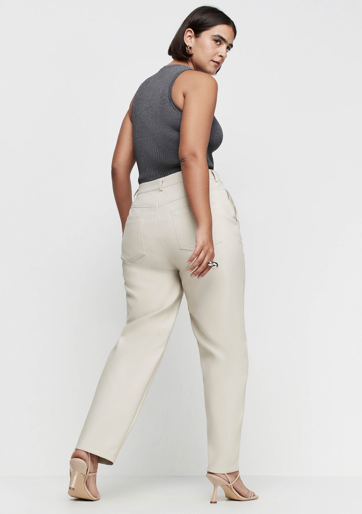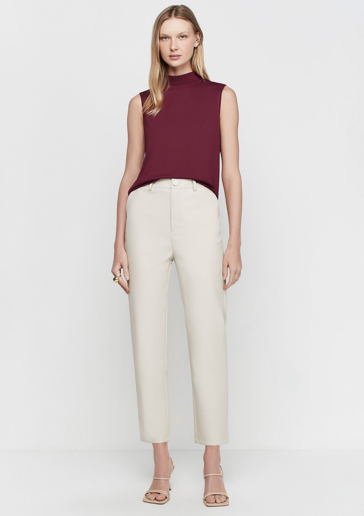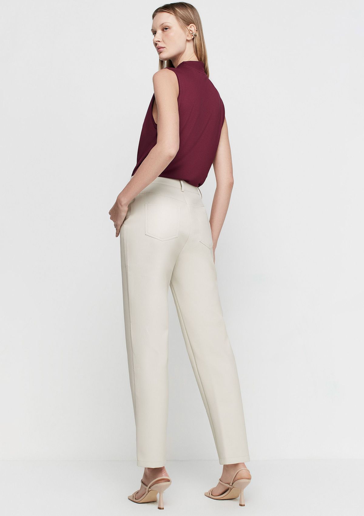 Calça Reta Cintura Alta Em P.U - Bege