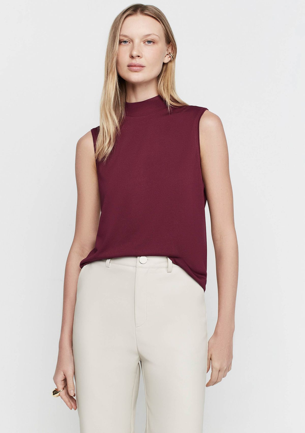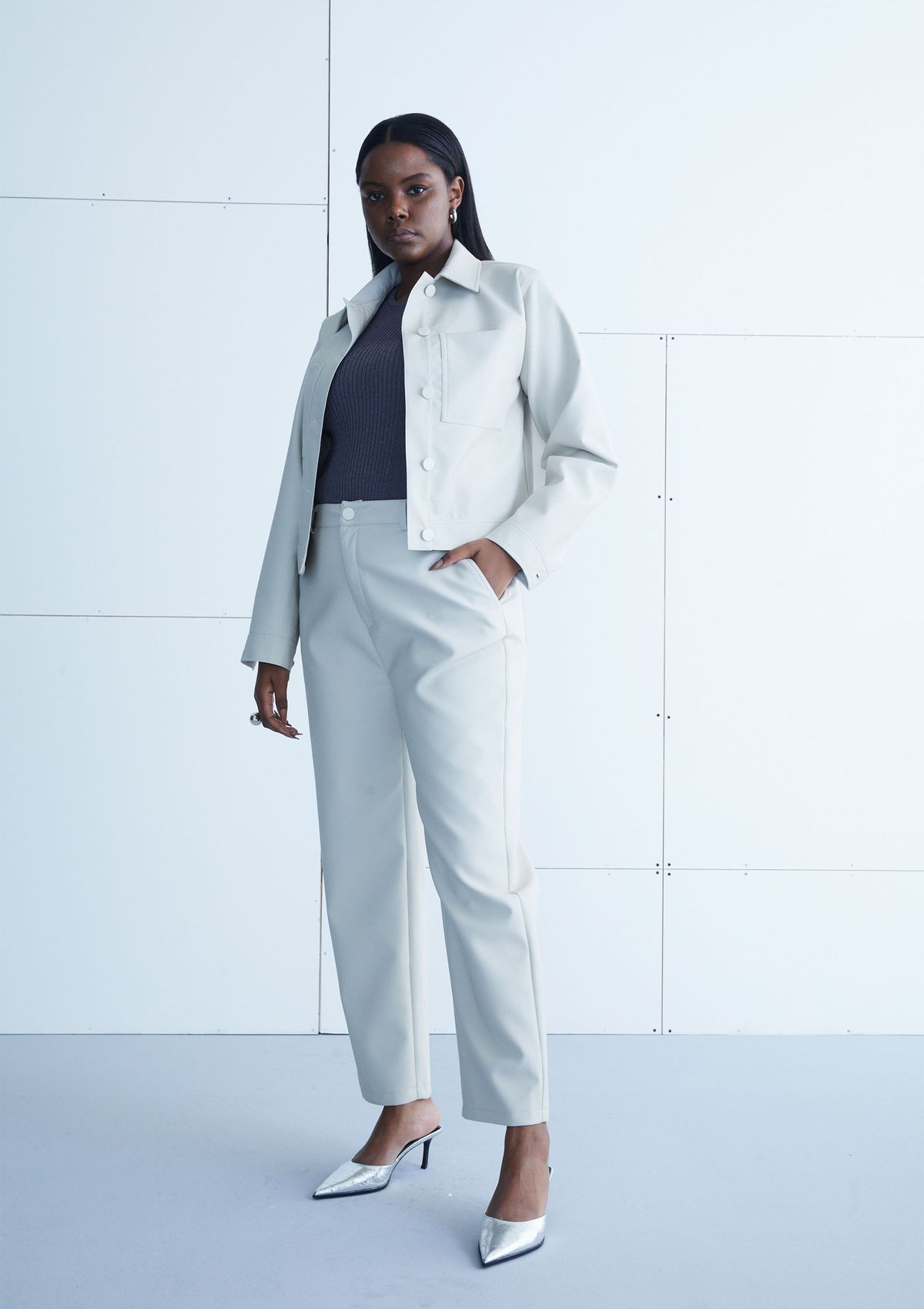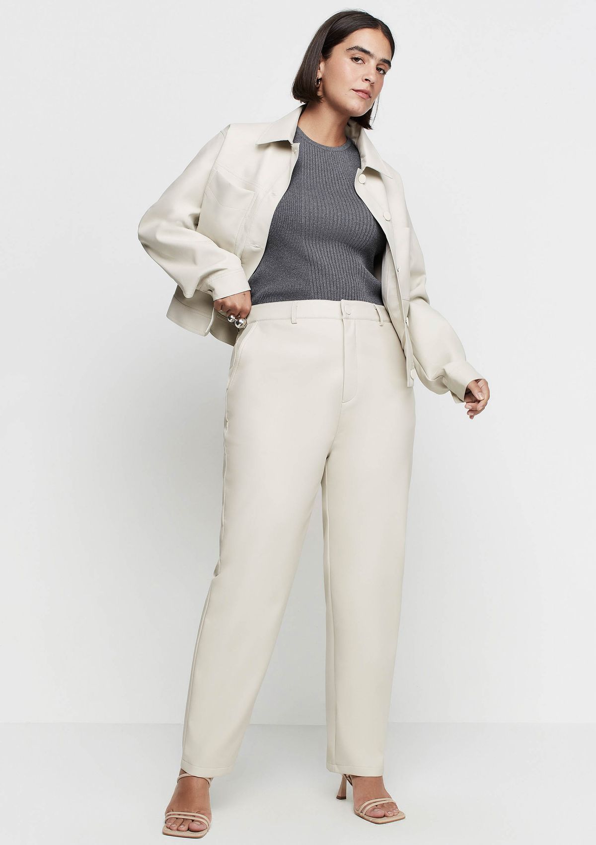 Calça Reta Cintura Alta Em P.U - Bege