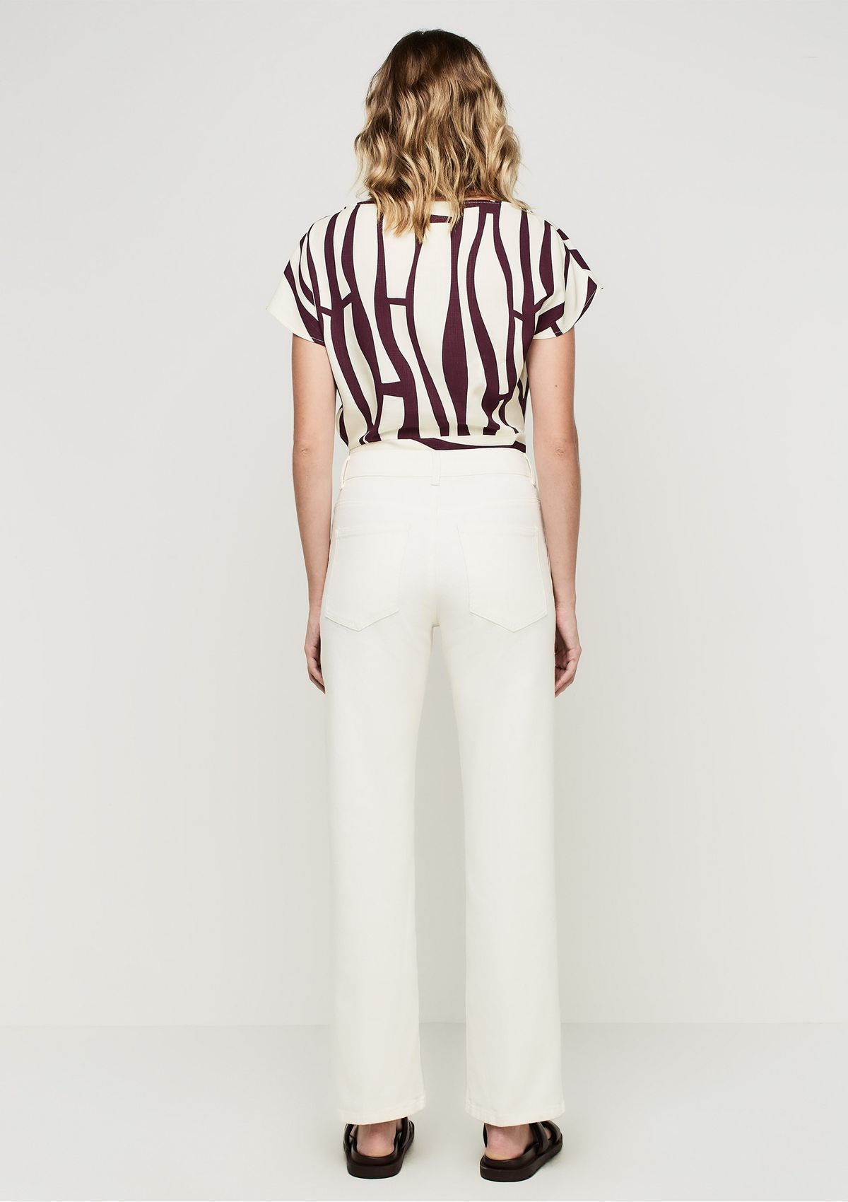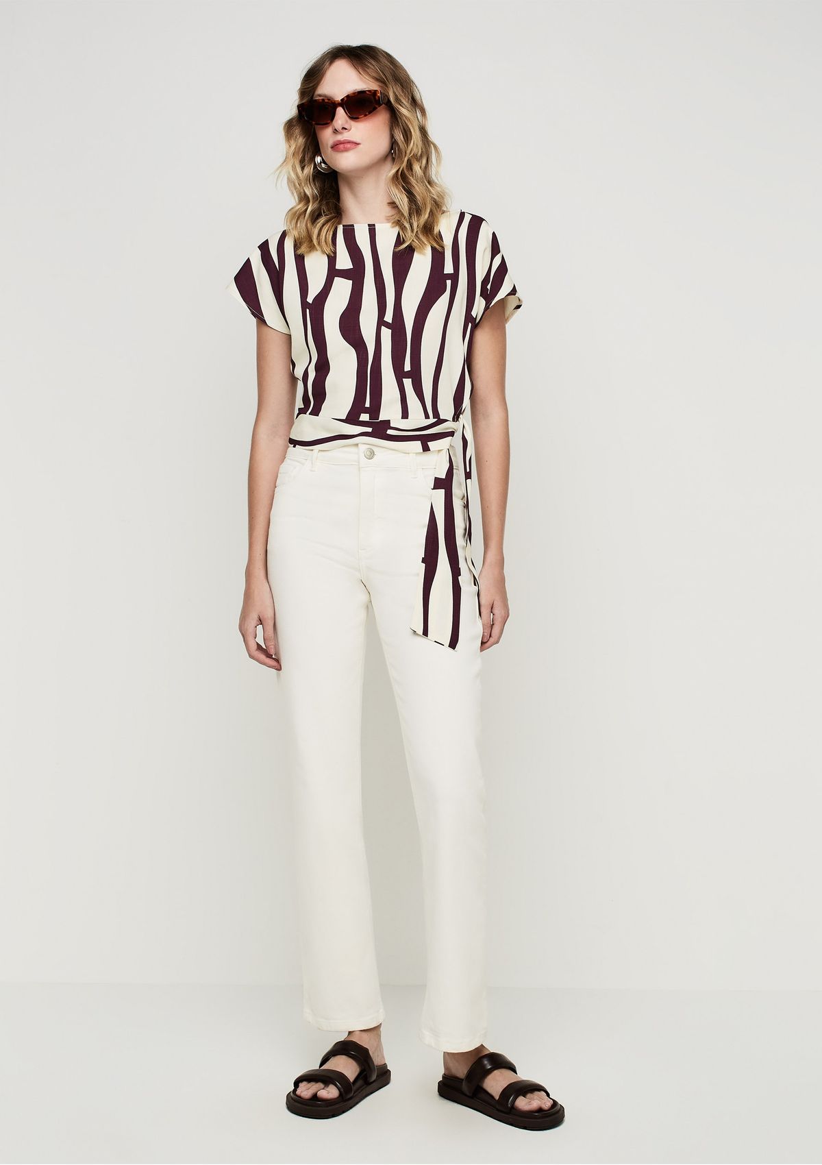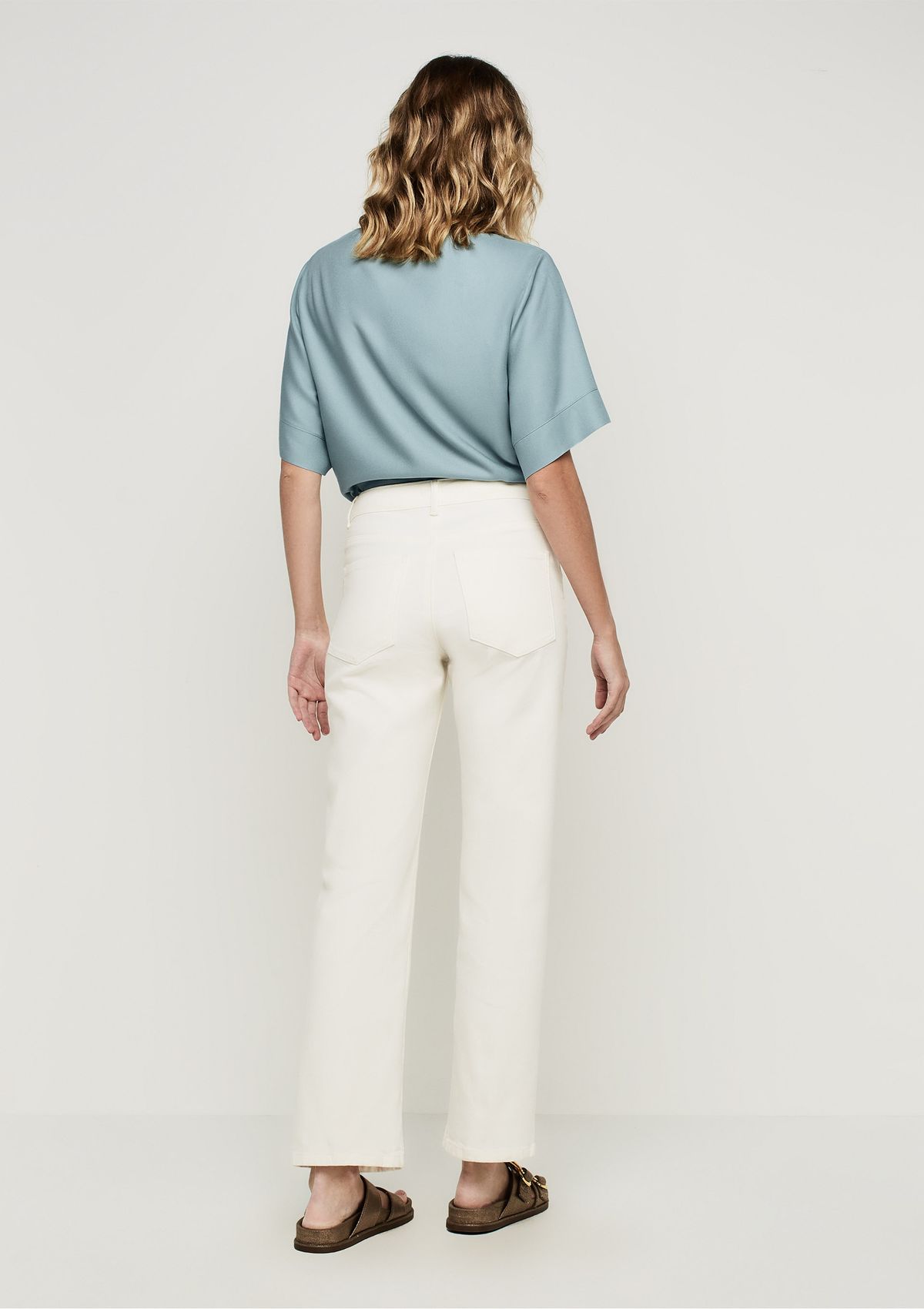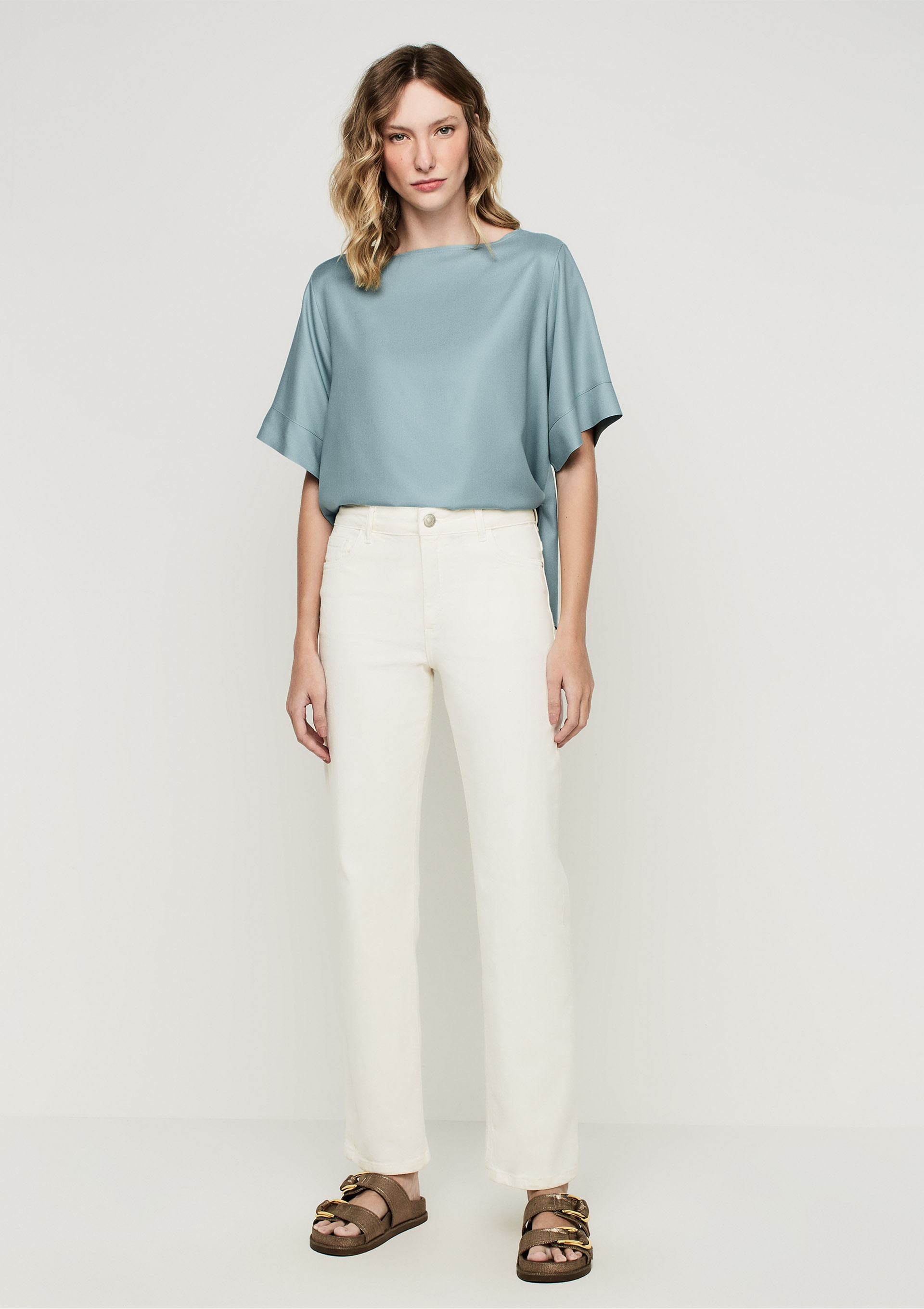 Calça Reta Cintura Alta Em Sarja Com Elastano - Off white