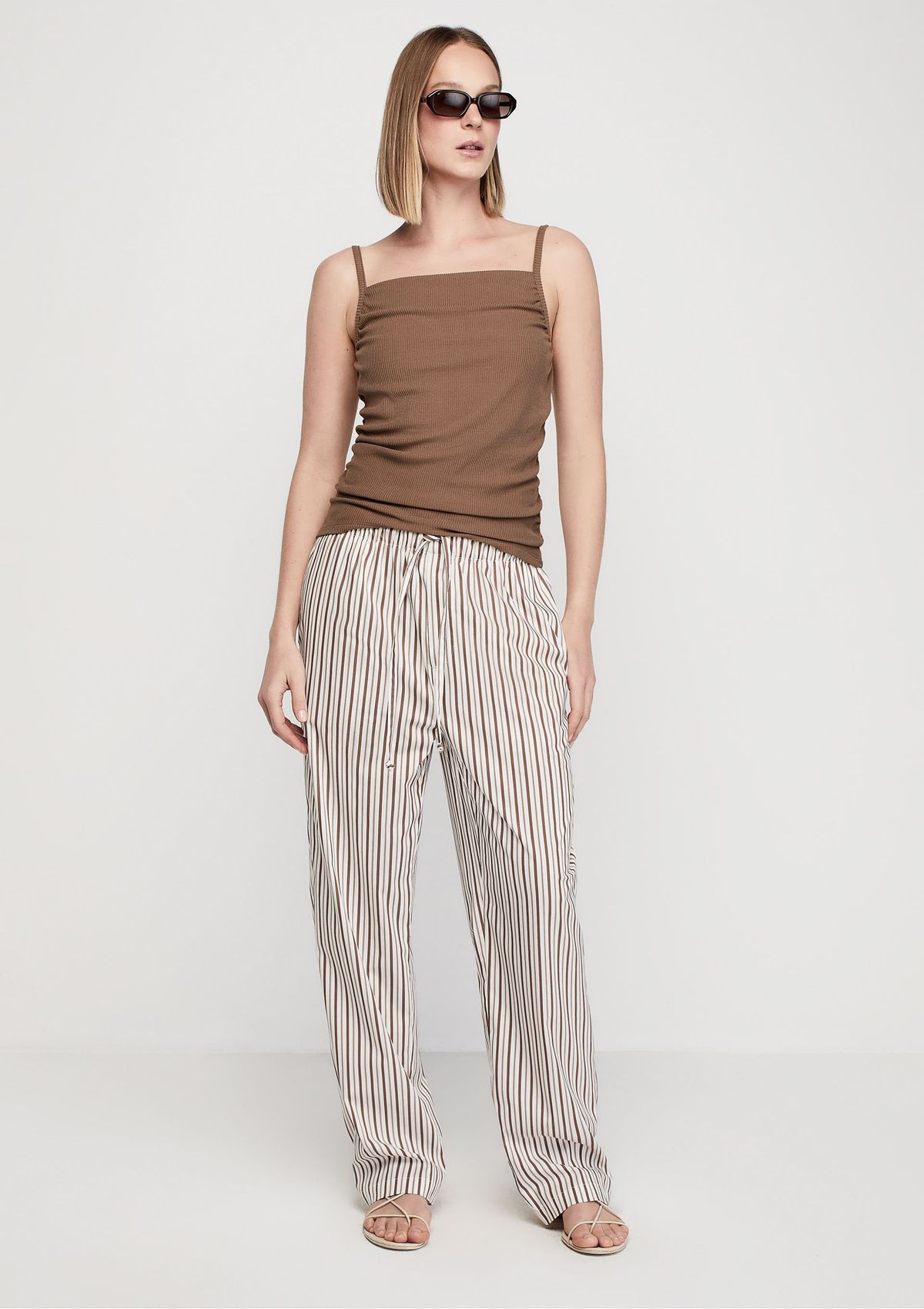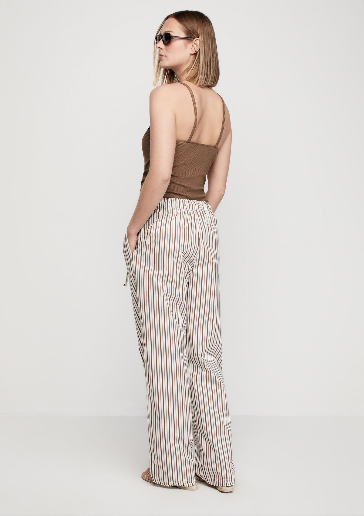 Calça Reta Marrom e Branco com Amarração - Listrada