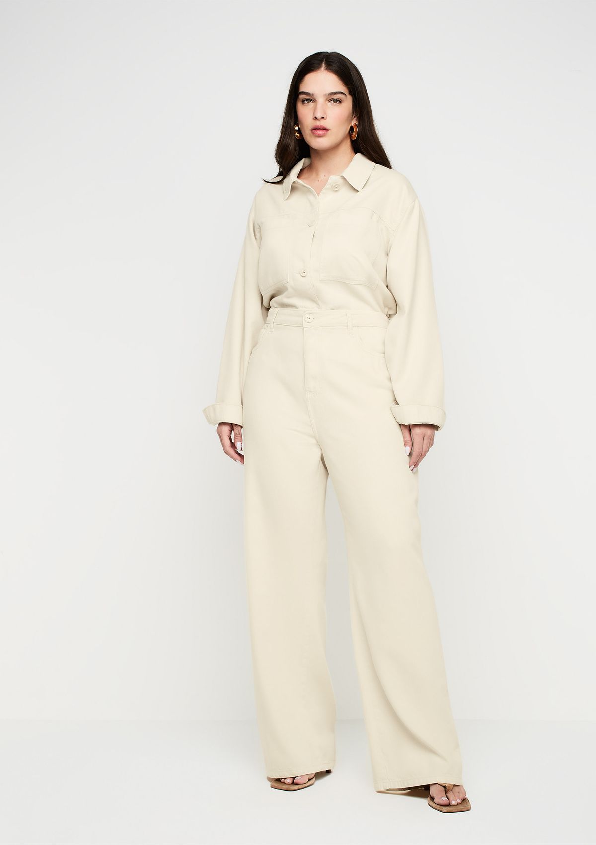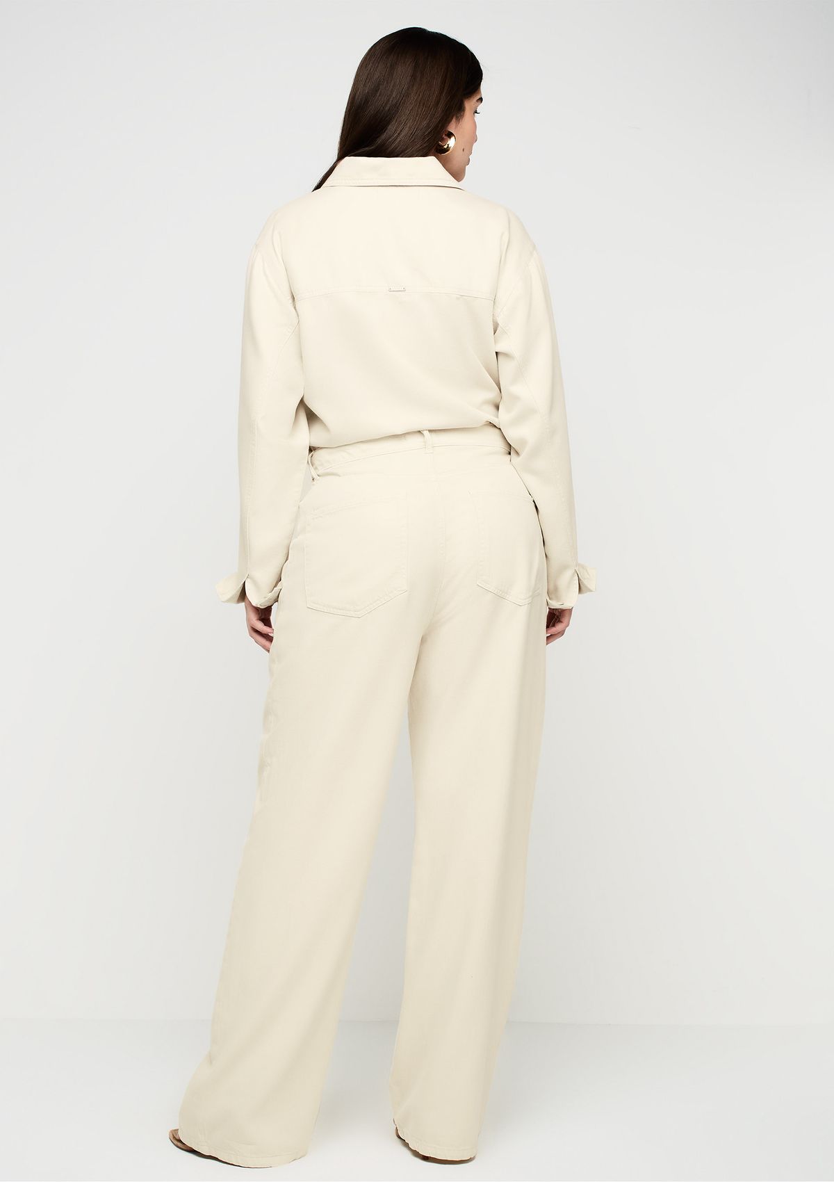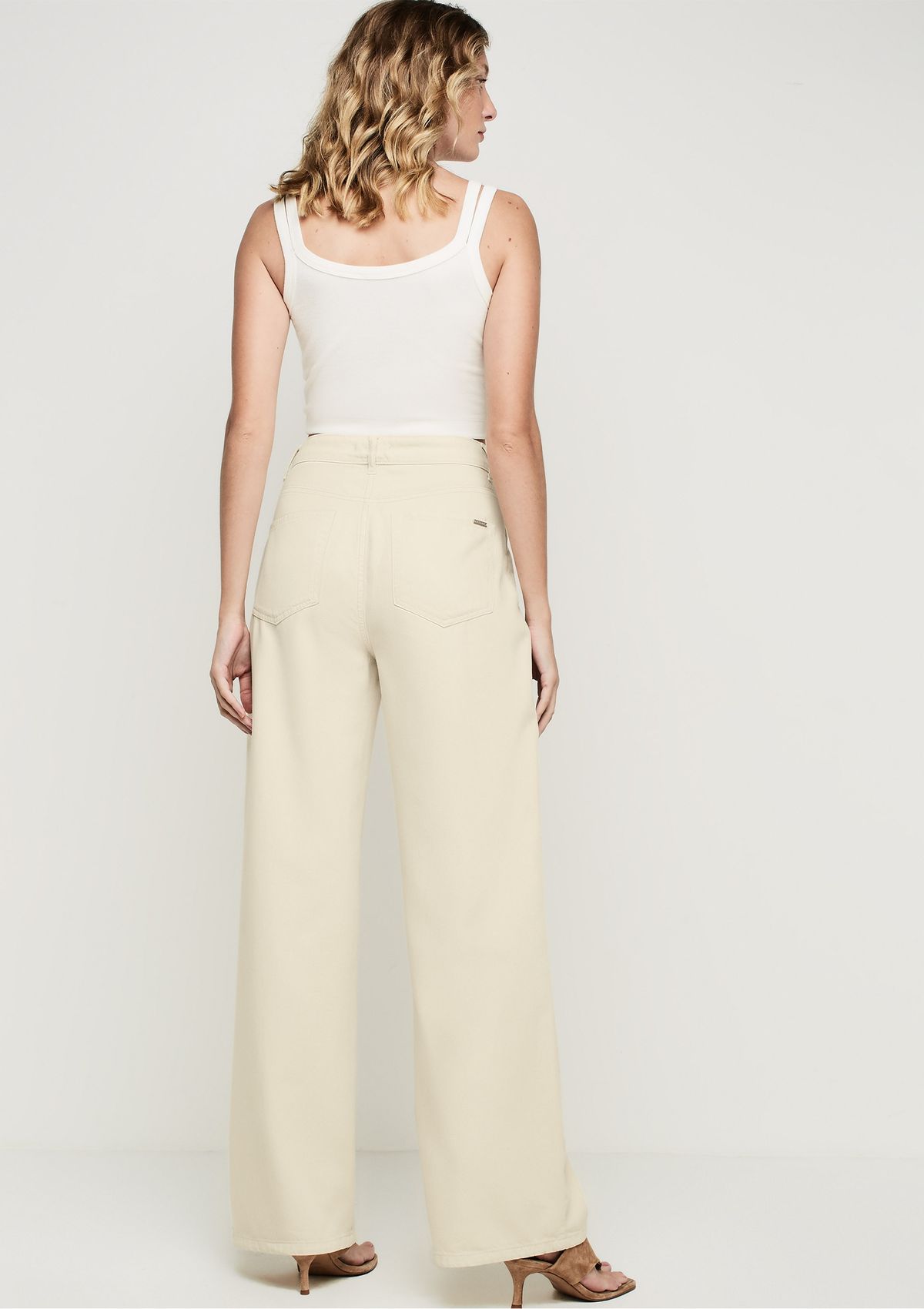 Calça Wide Leg Cintura Alta Em Sarja Com Liocel - Bege