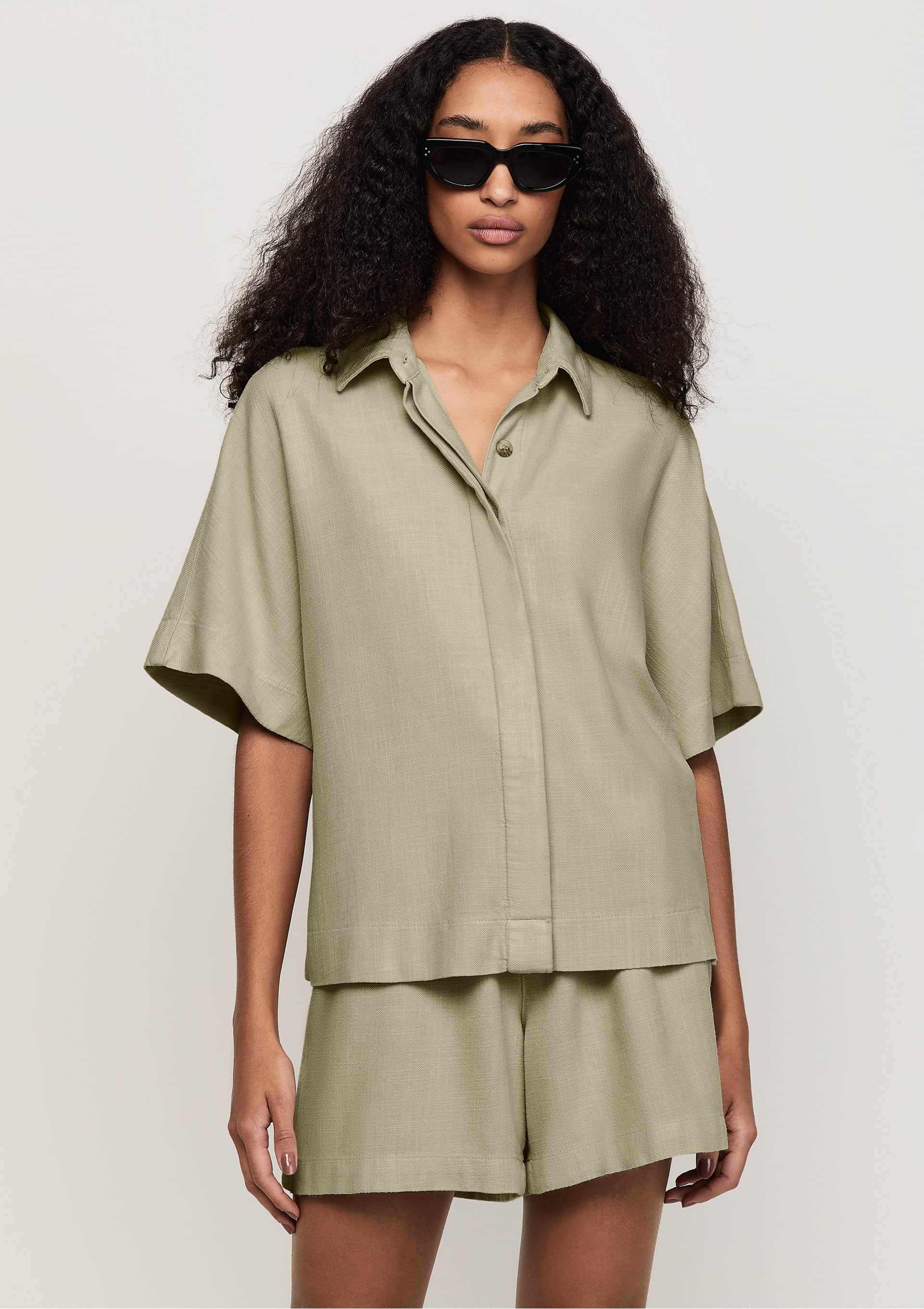Camisa em Sarja Comprimento Regular - Verde