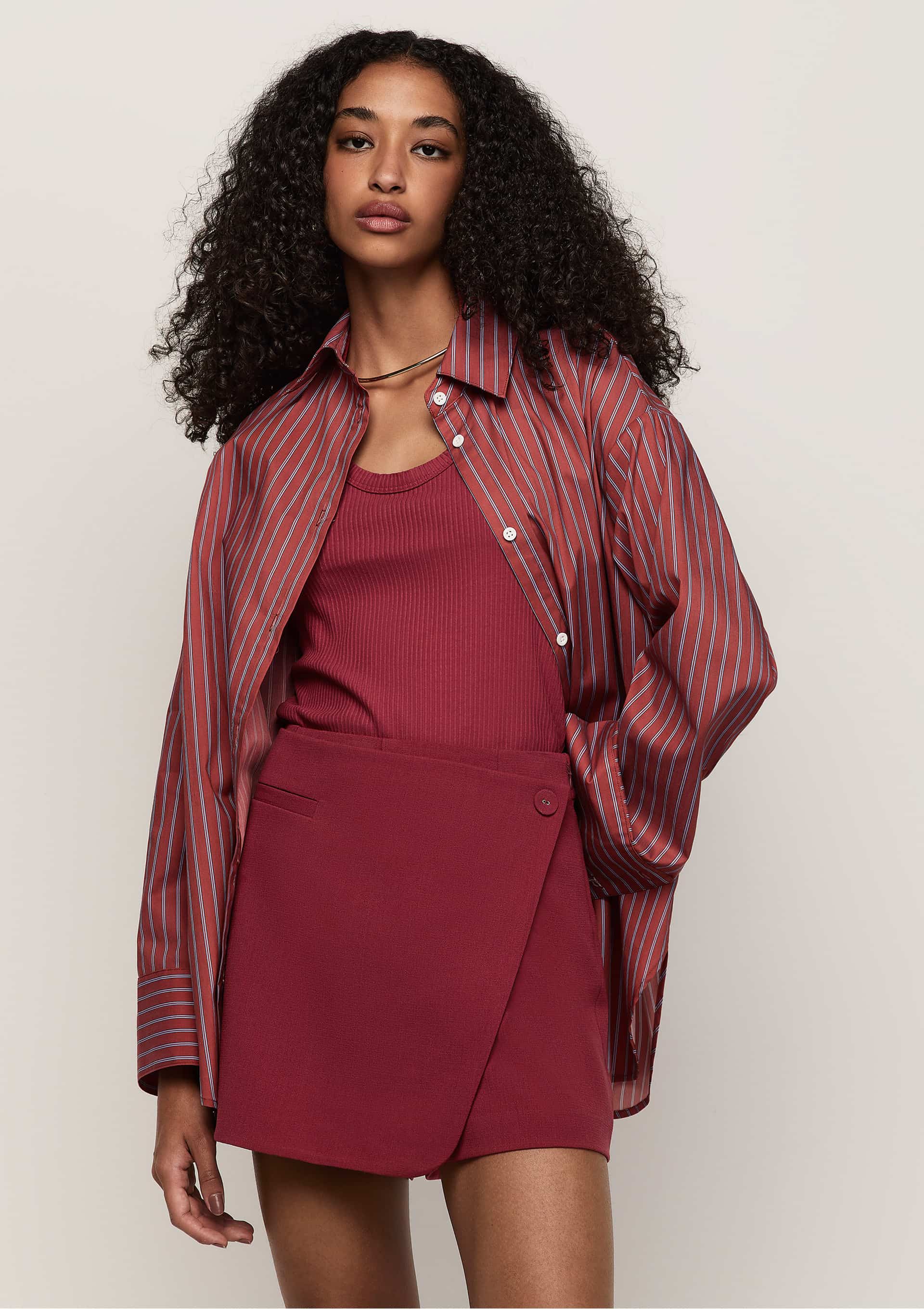 Camisa Manga Longa e Comprimento Alongado - Vermelho