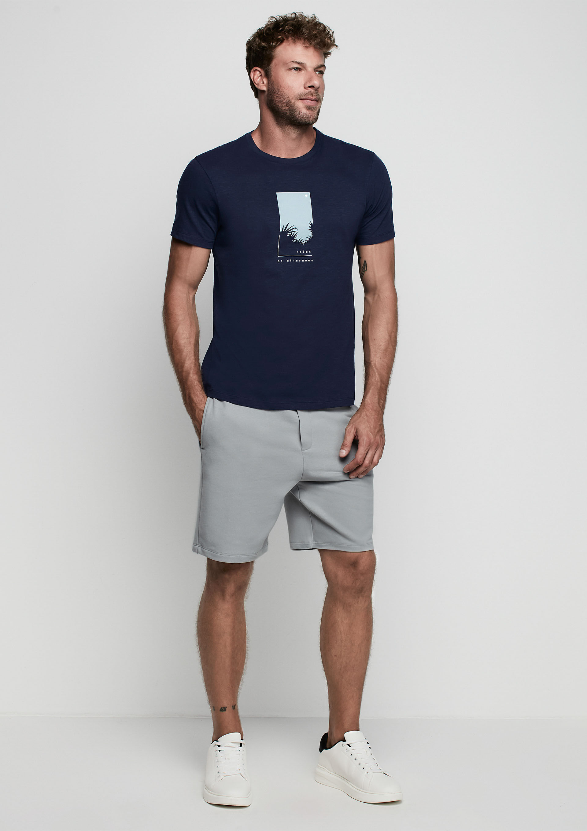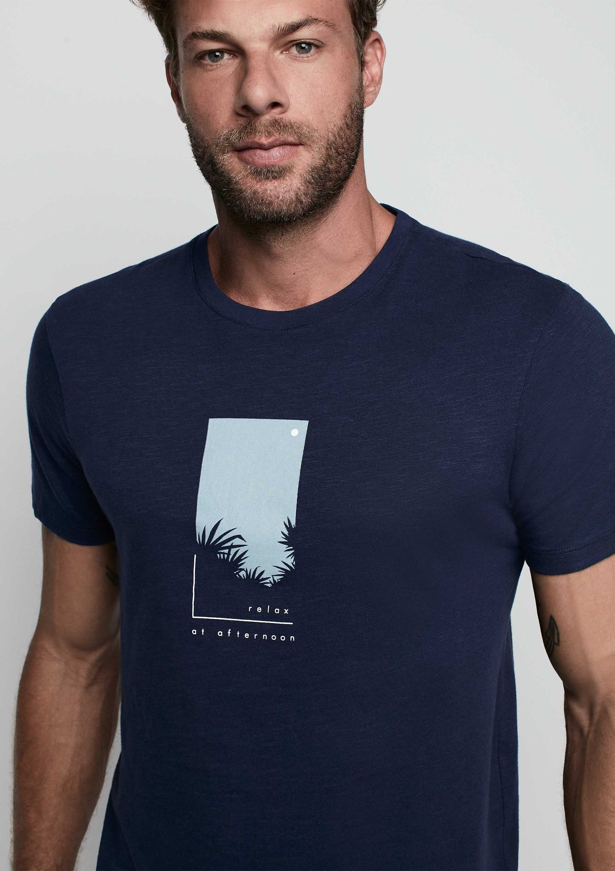 Camiseta Masculina Em Malha Flamê Estampada - Azul