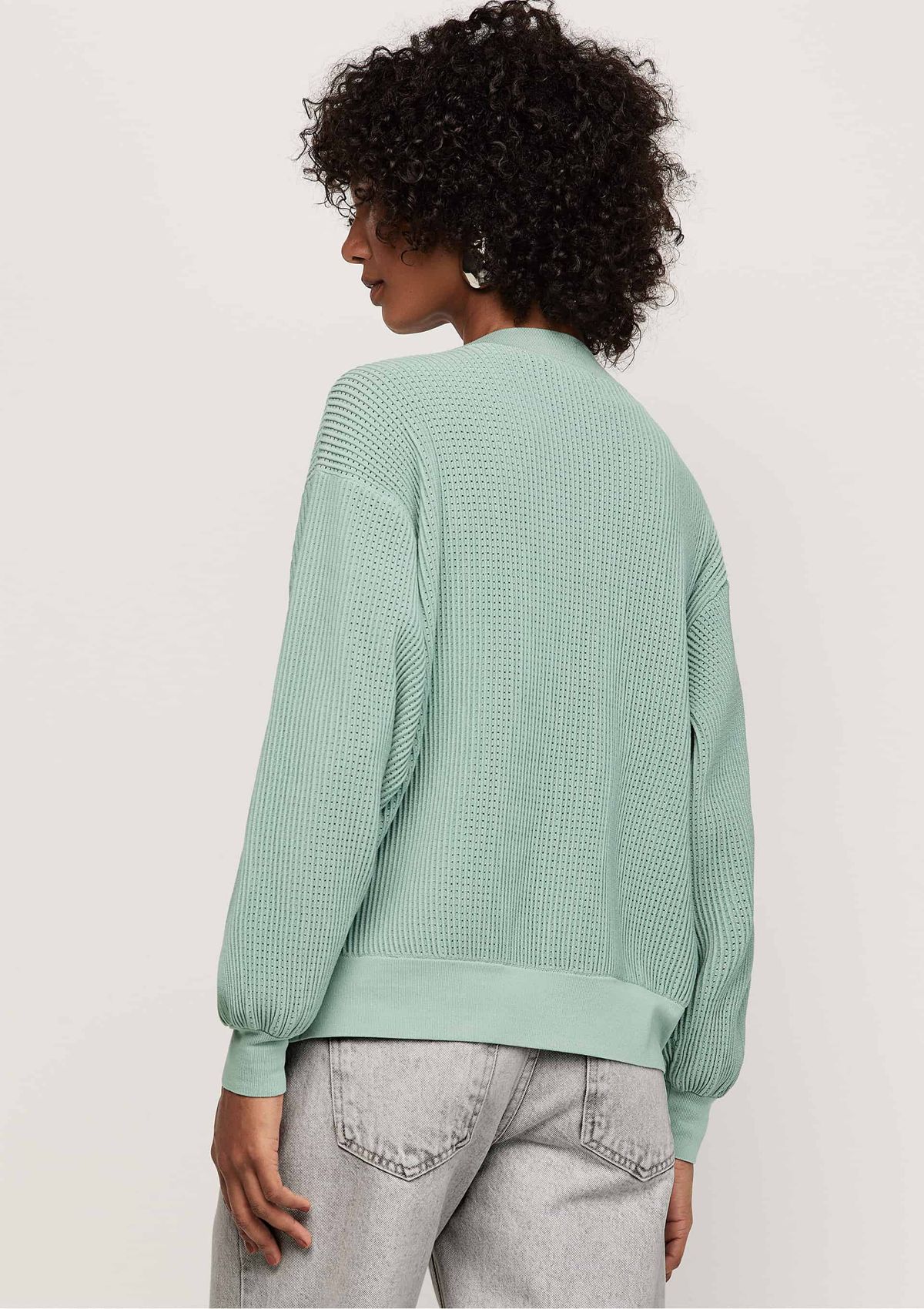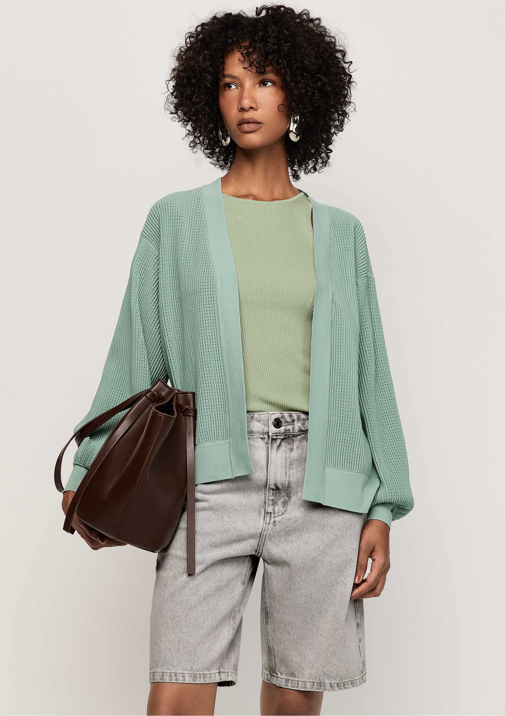 Cardigan Tricô com Manga Bufante - Azul