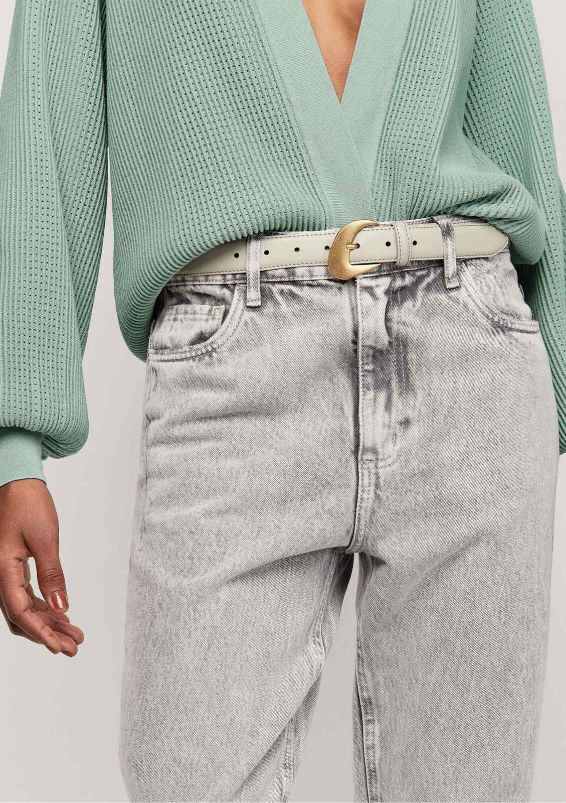 Cinto com Pesponto e Fivela Formato Orgânico - Cinza