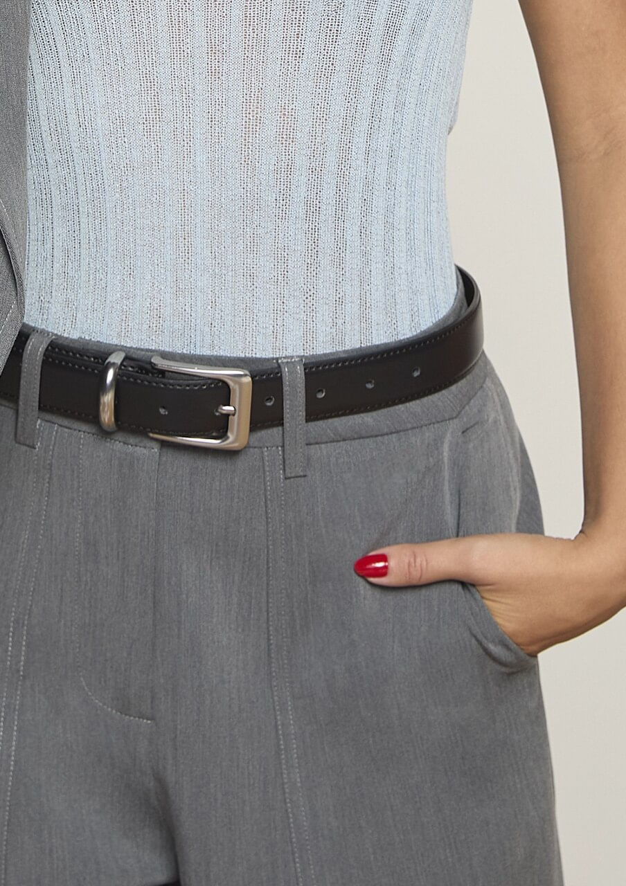 Cinto Fivela Quadrada Em Couro - Preto