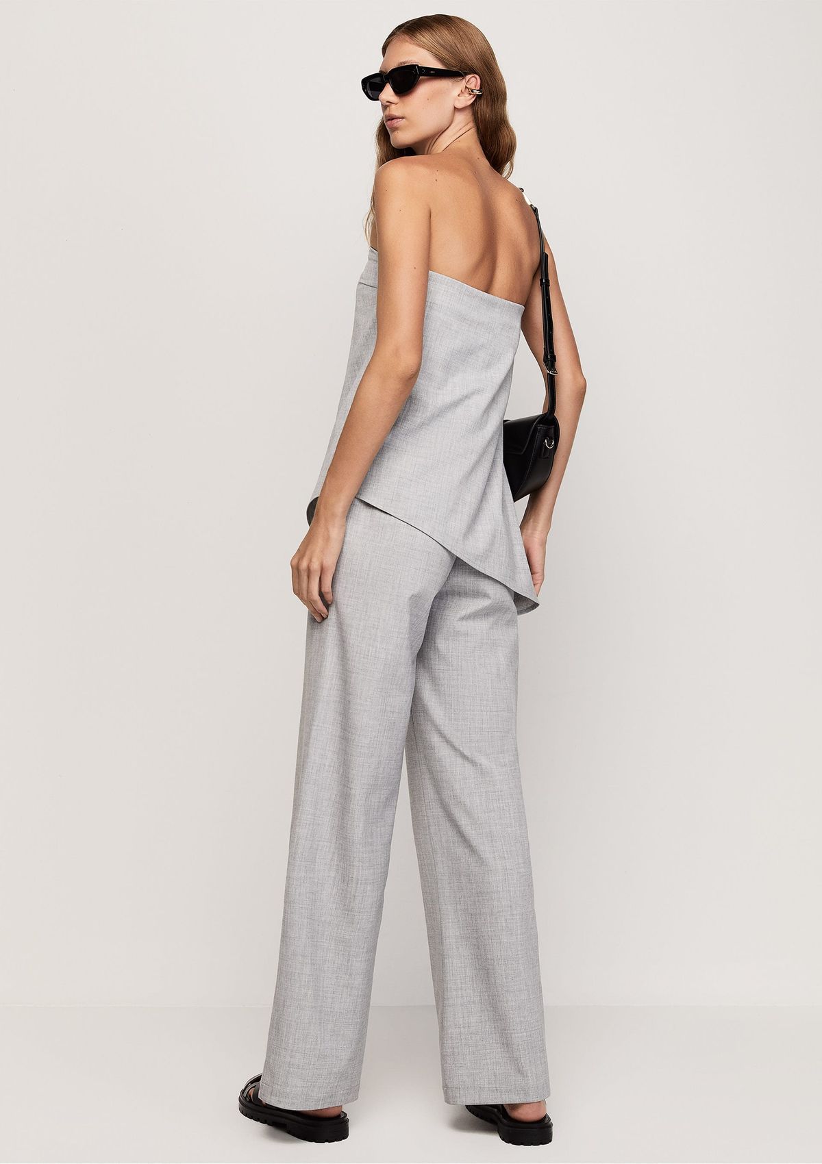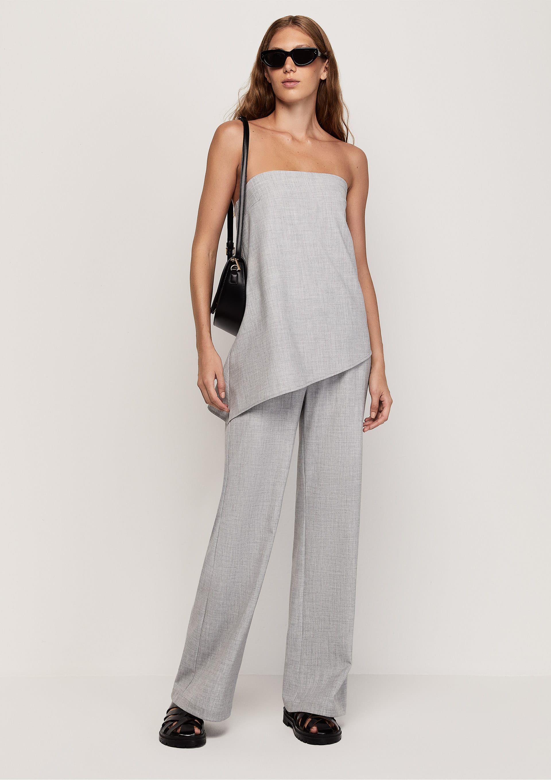 Macacão Alfaiataria Decote Reto - Cinza