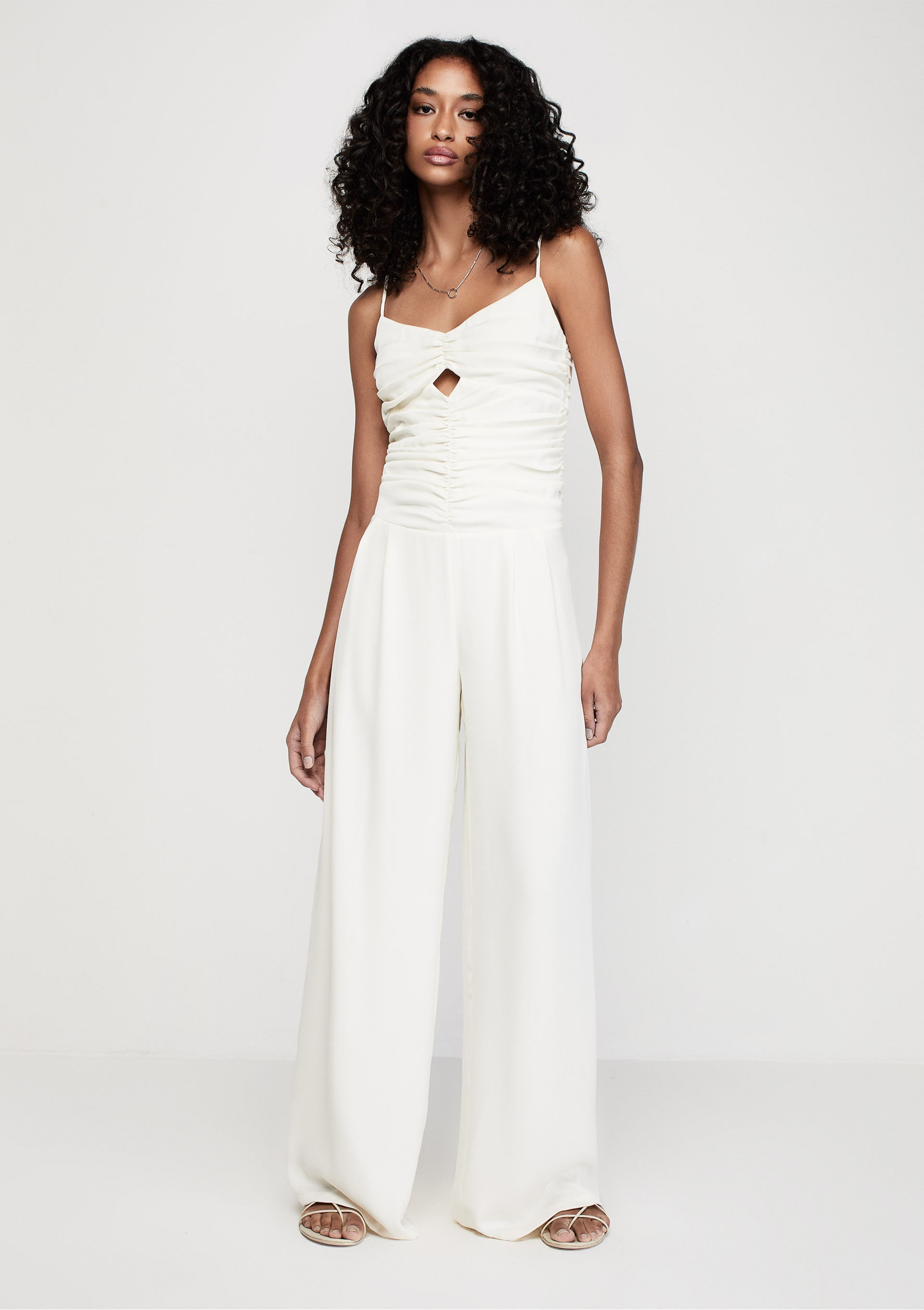 Macacão com Alças Finas e Cut Out - Off white