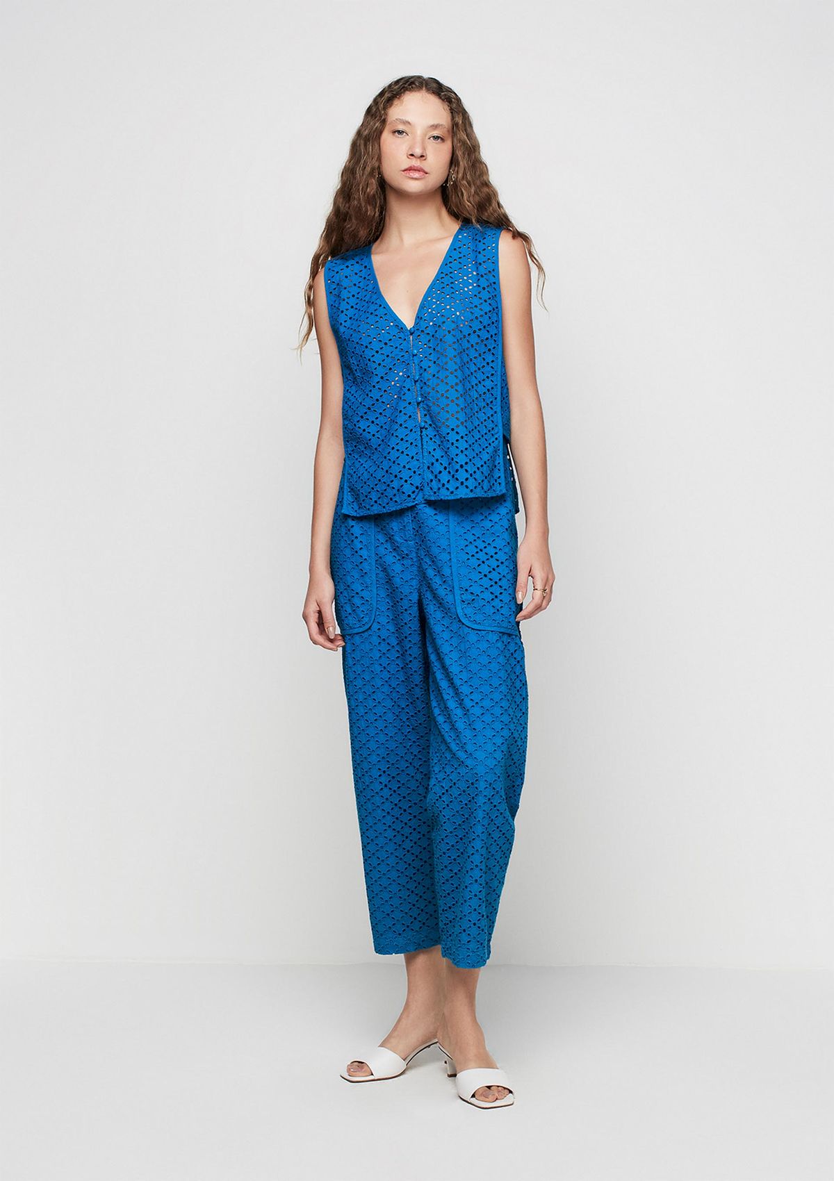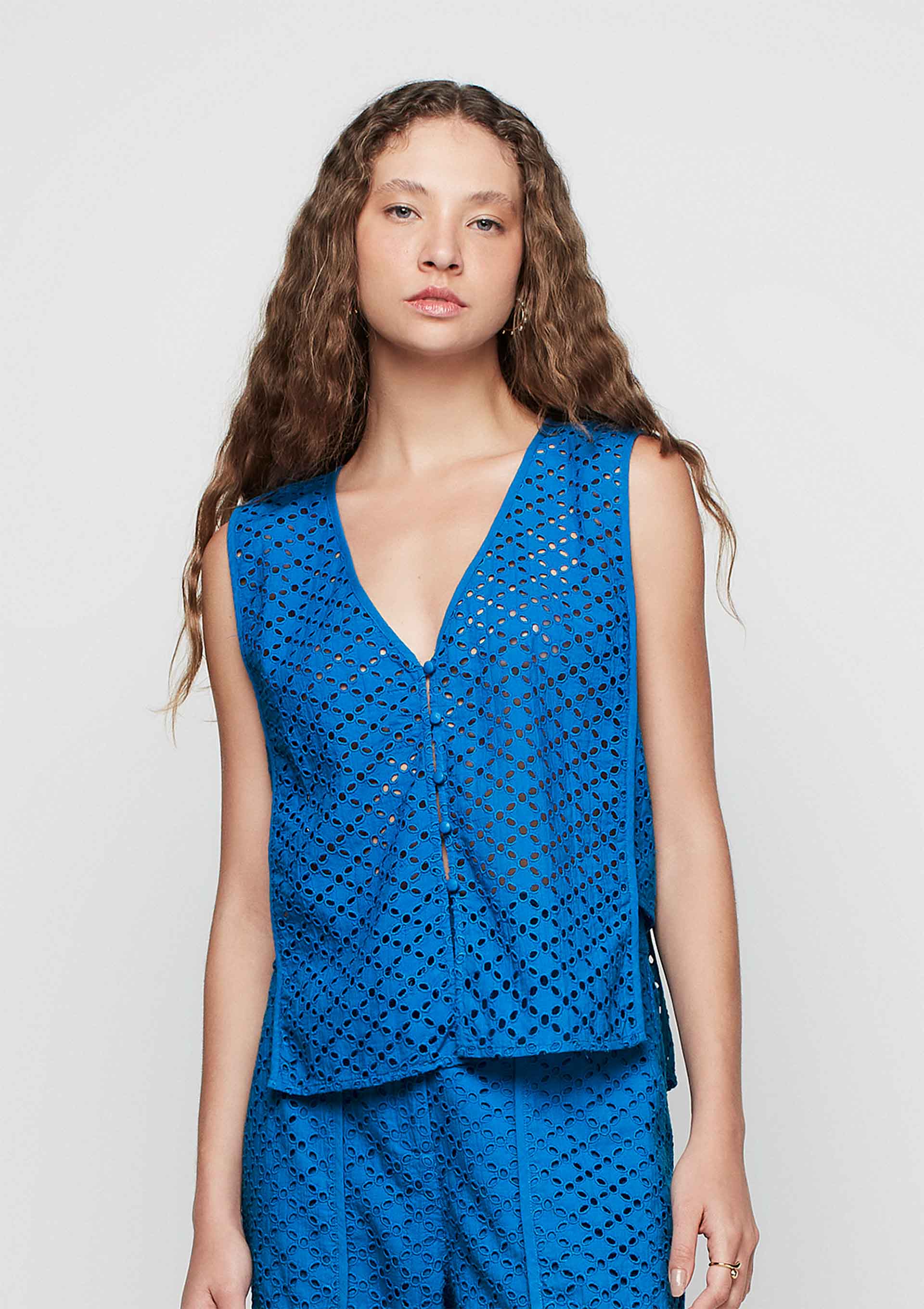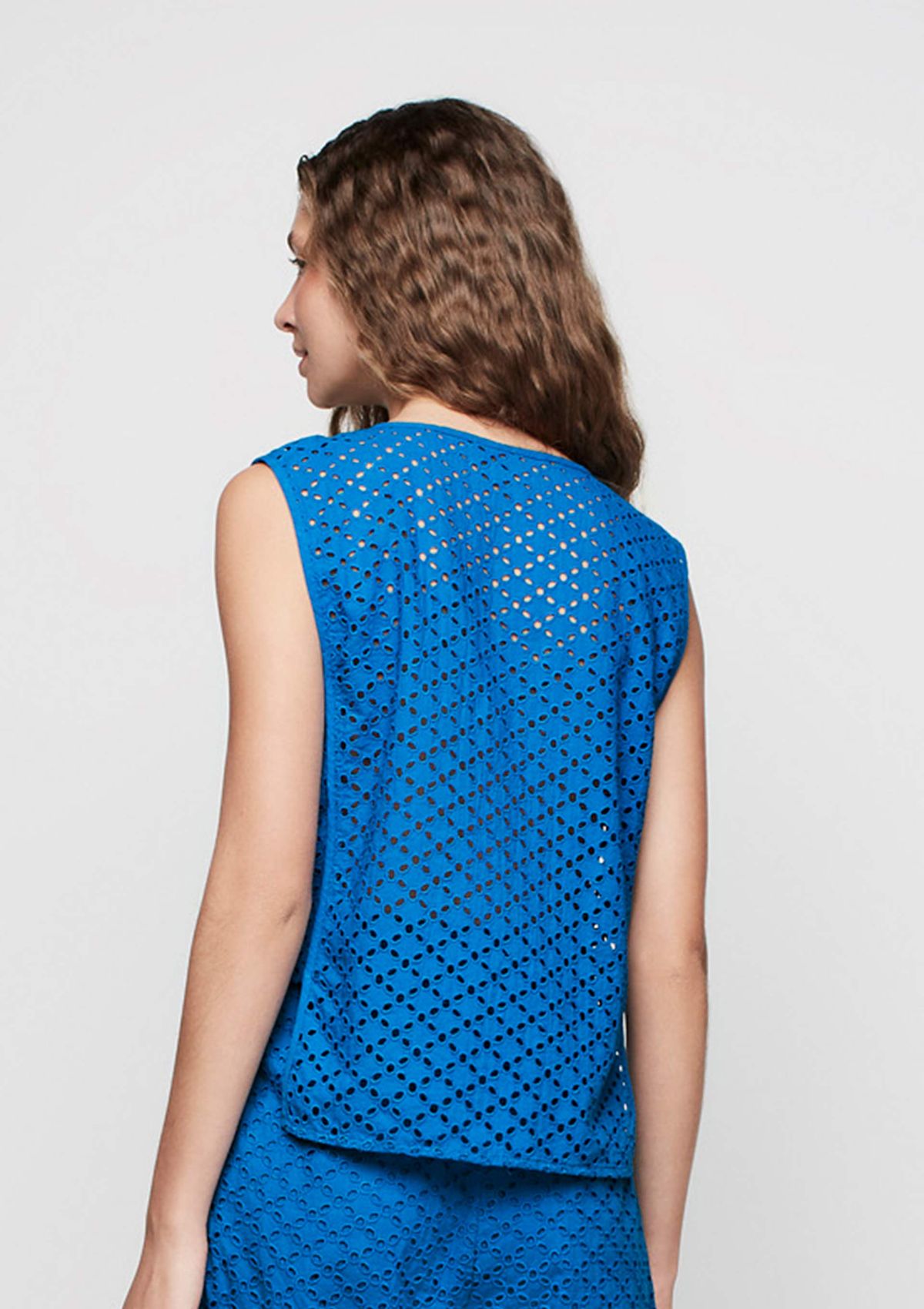 Regata Decote V Alças Largas Em Laise - Azul