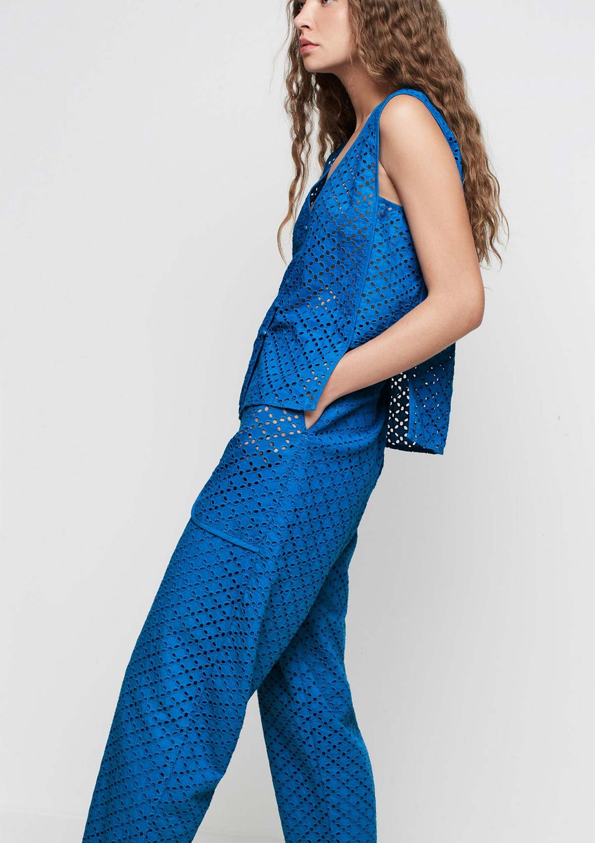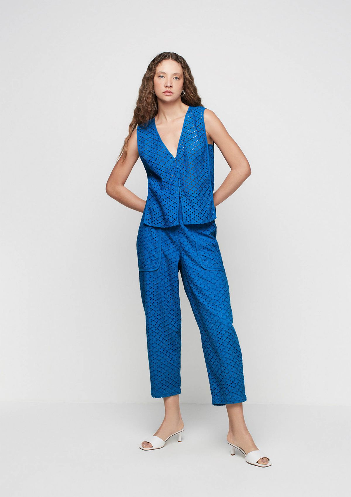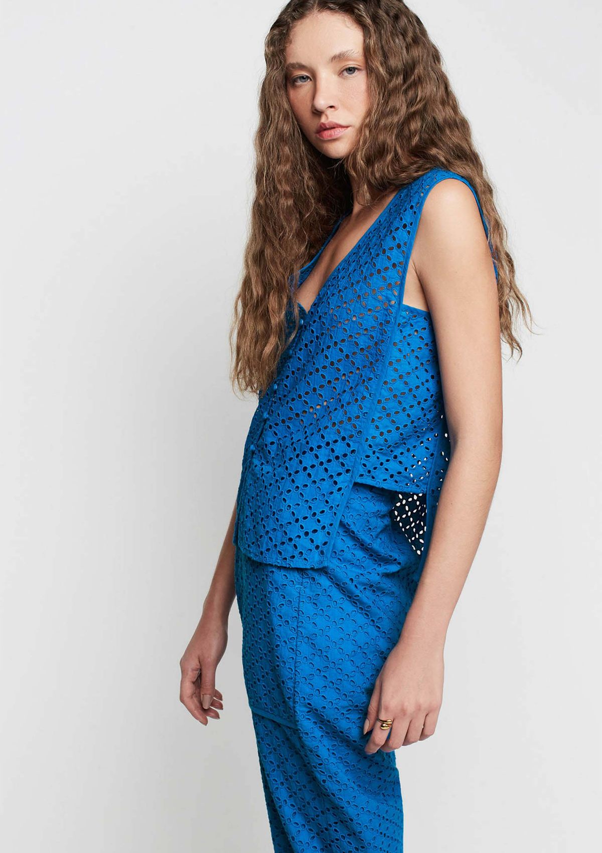 Regata Decote V Alças Largas Em Laise - Azul