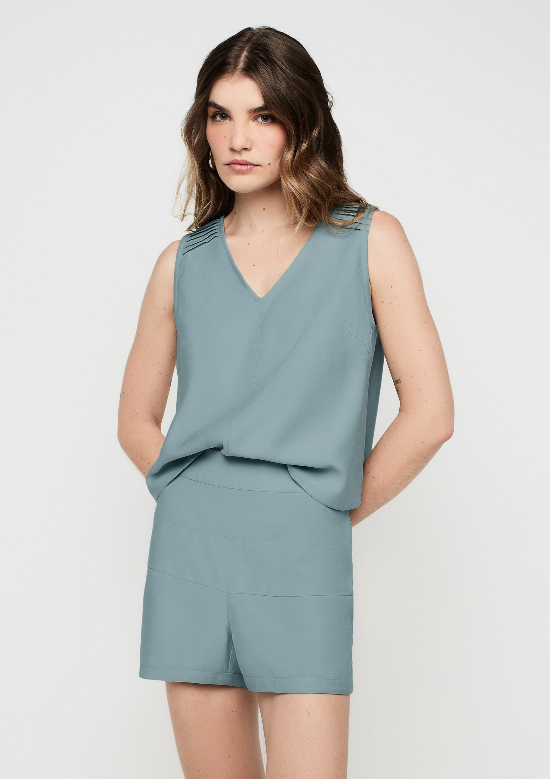Shorts Curto Reto Em Tencel - Azul