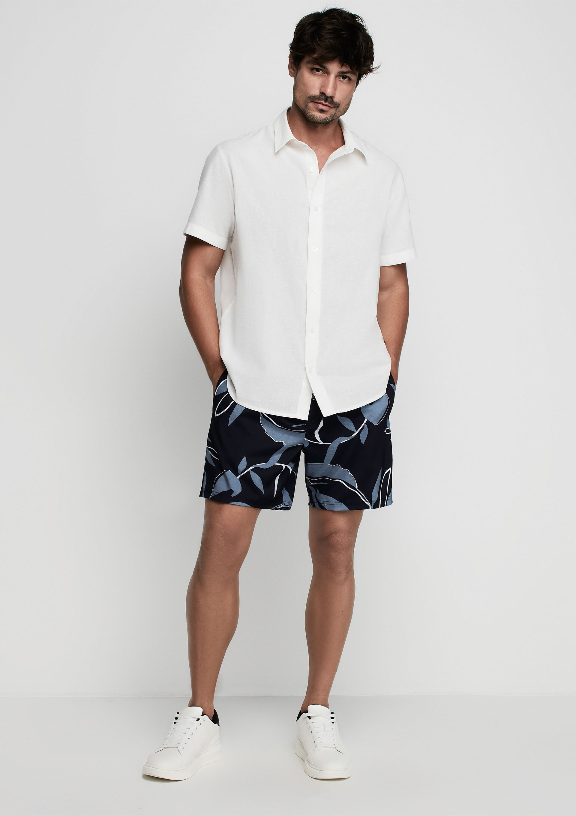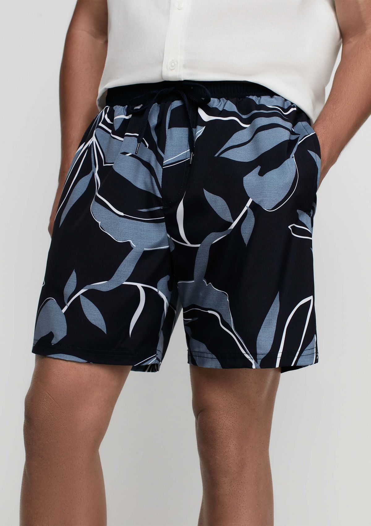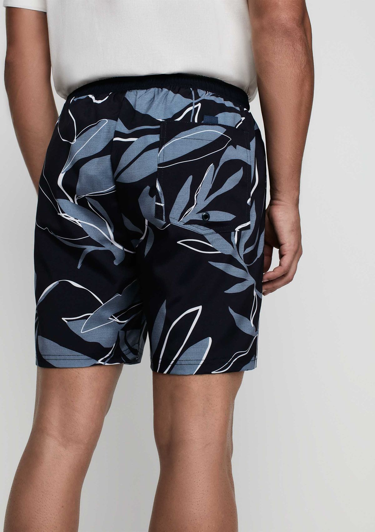 Shorts De Banho Masculino Reto Preto, Azul e Branco - Estampado