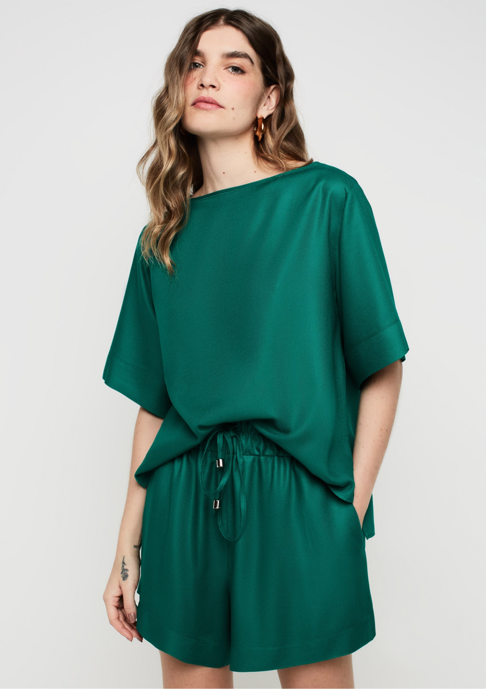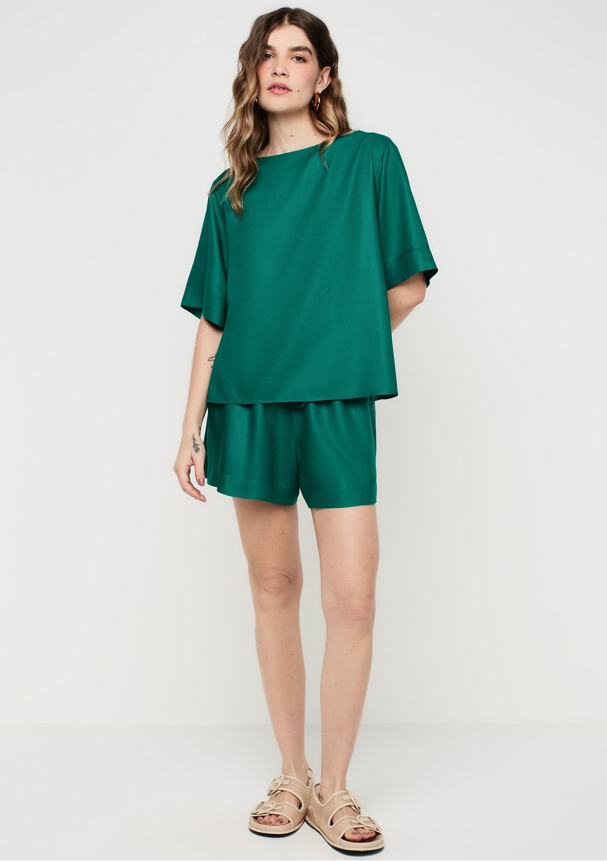 Shorts Evasê Cintura Alta Com Elástico Em Viscose - Verde