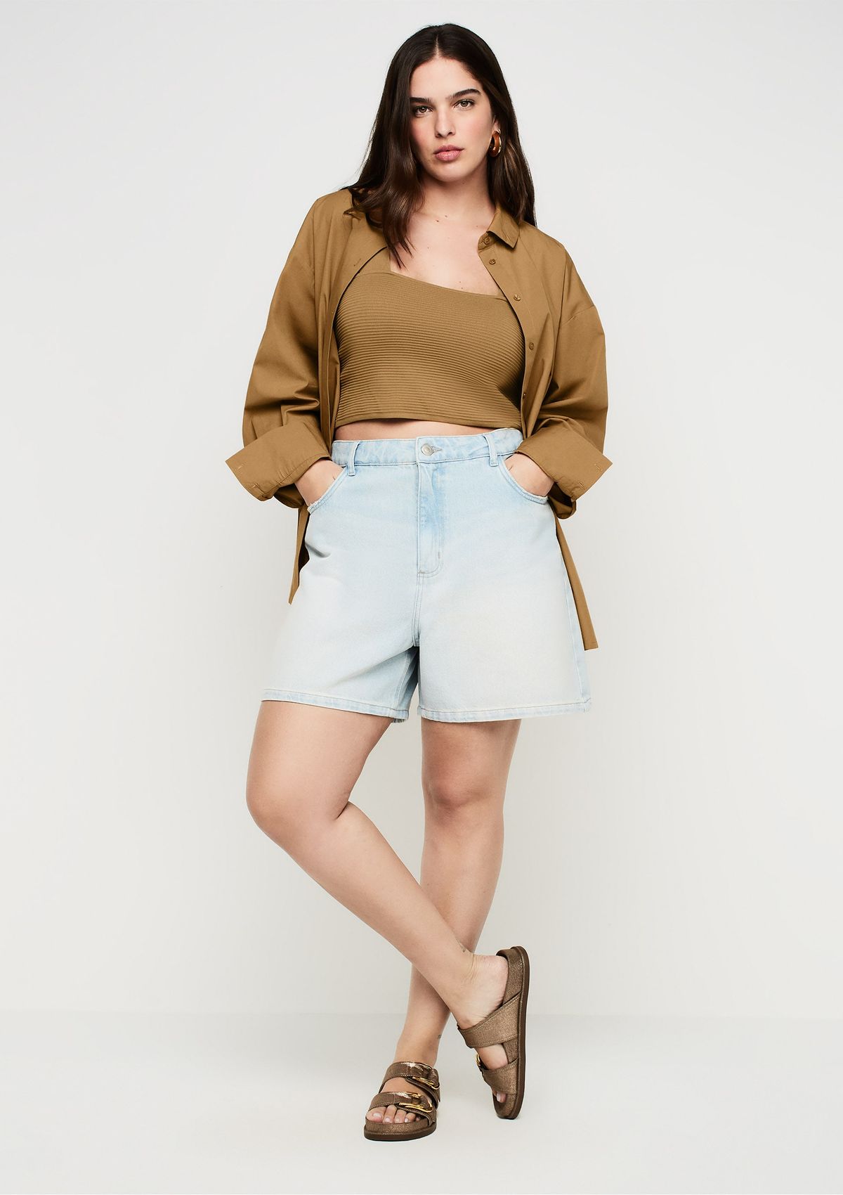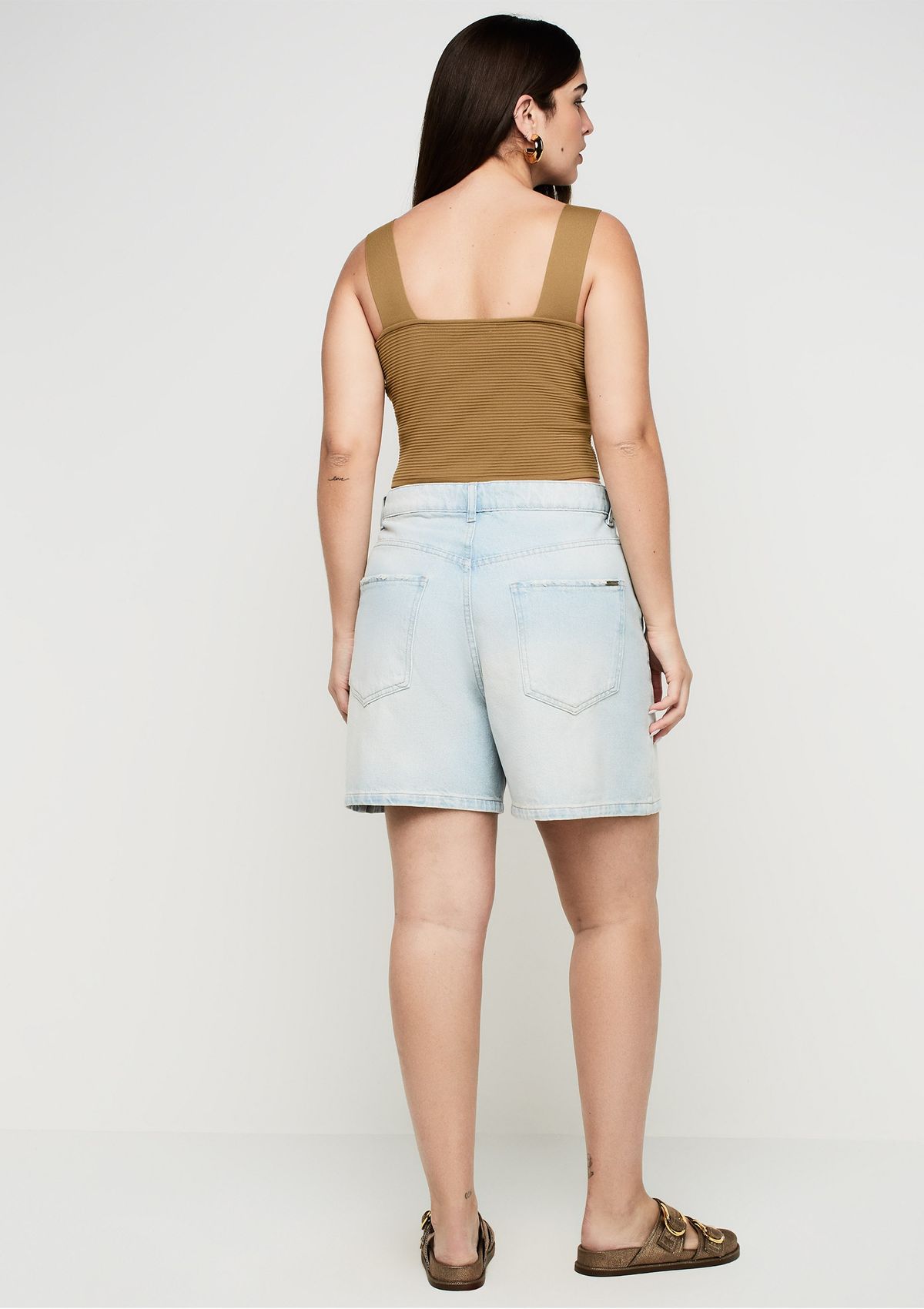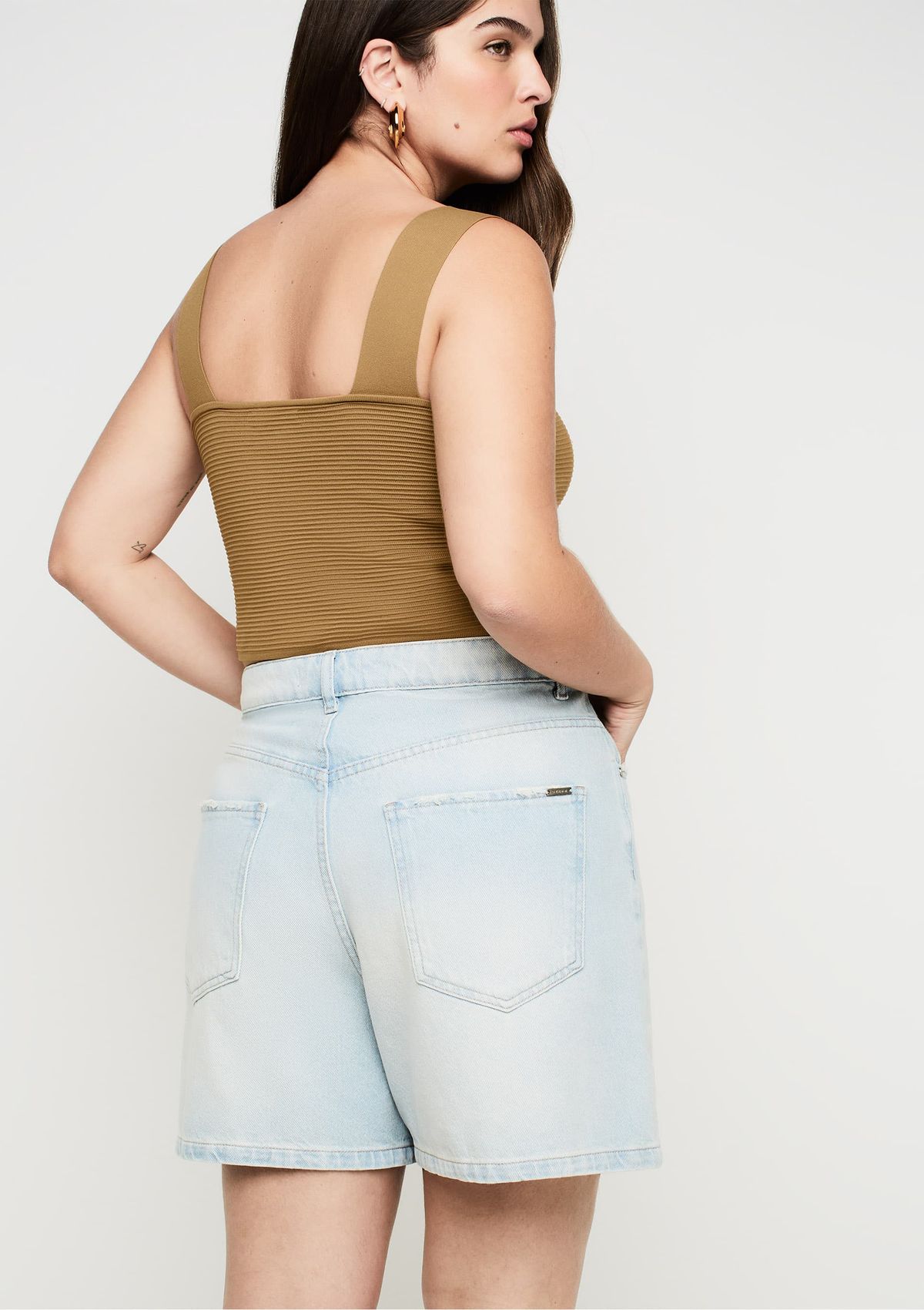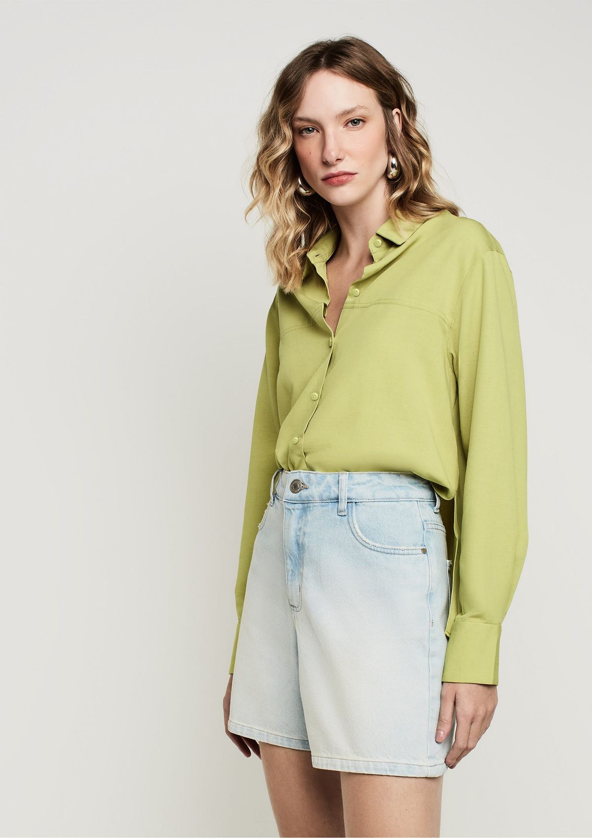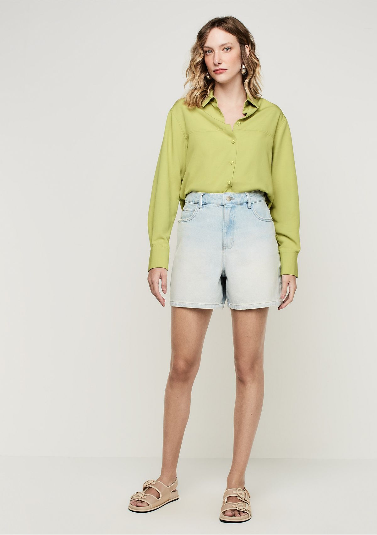 Shorts Jeans Reto Cintura Alta - Azul