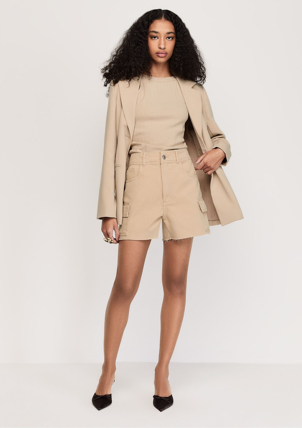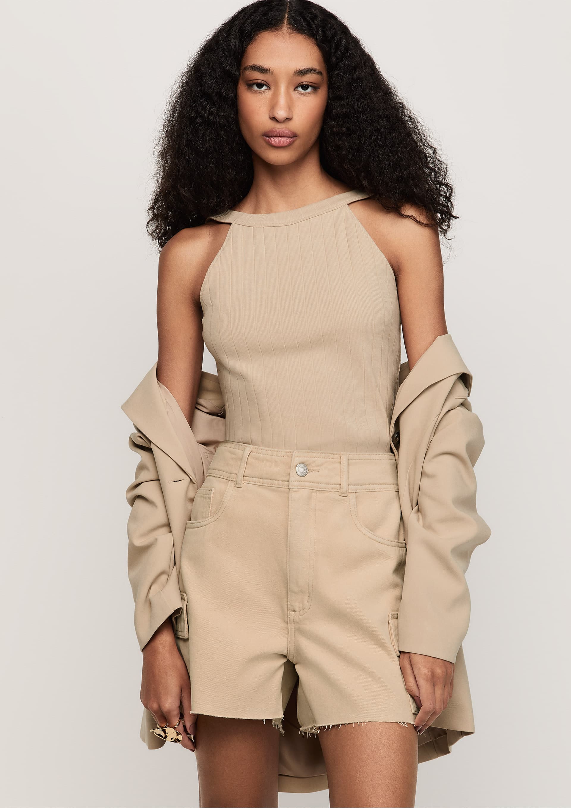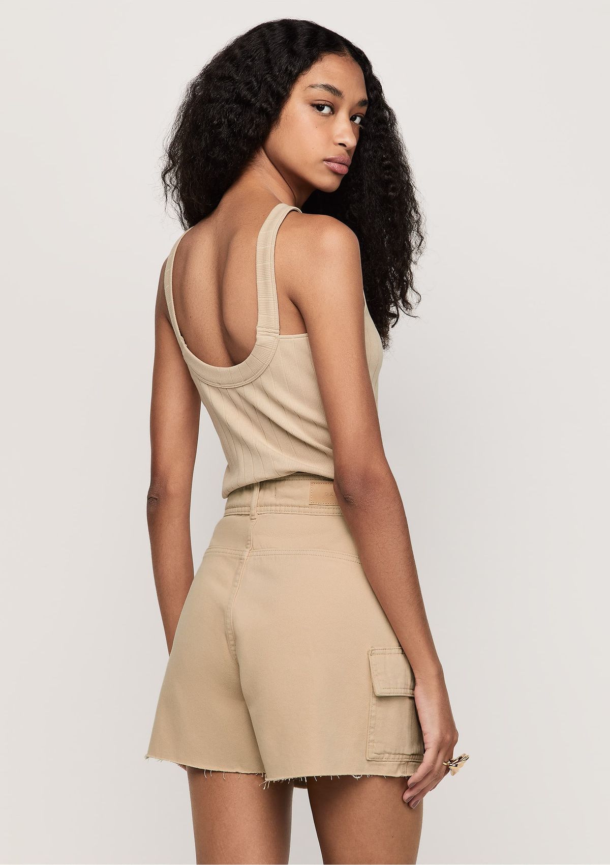 Shorts Sarja Cargo Cintura Alta - Bege