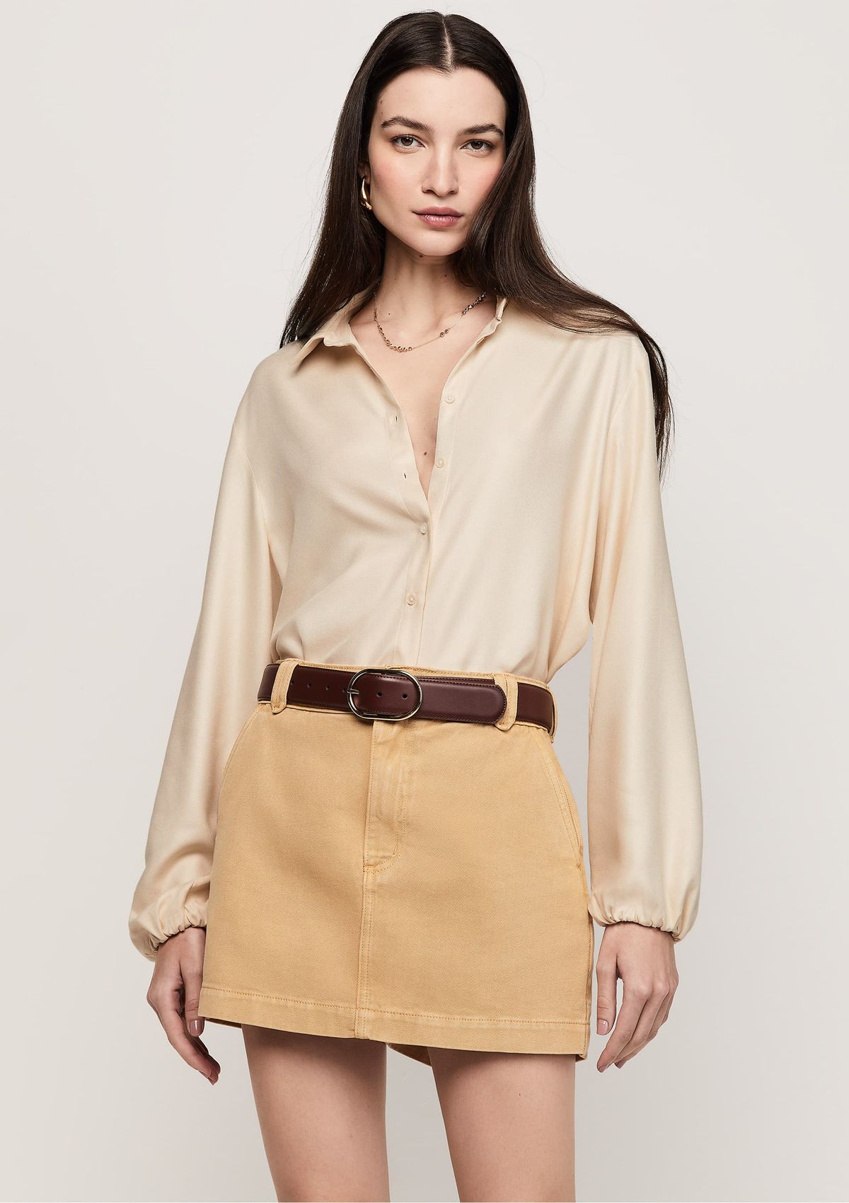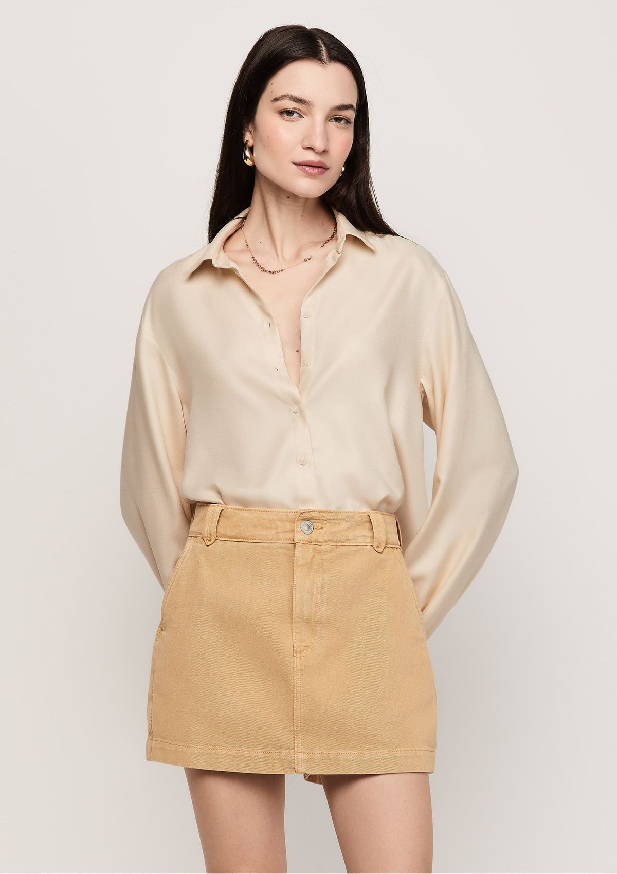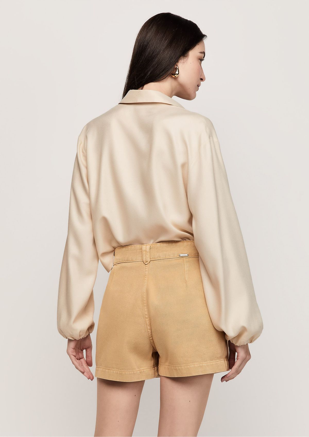 Shorts Sarja Curto Modelagem Reta - Bege