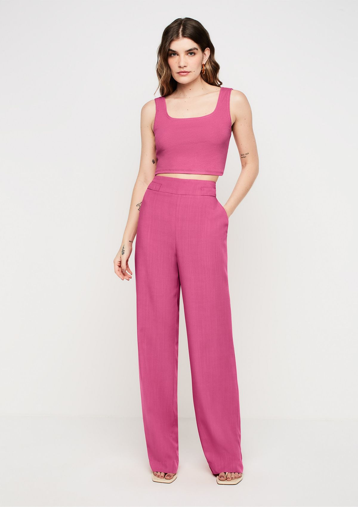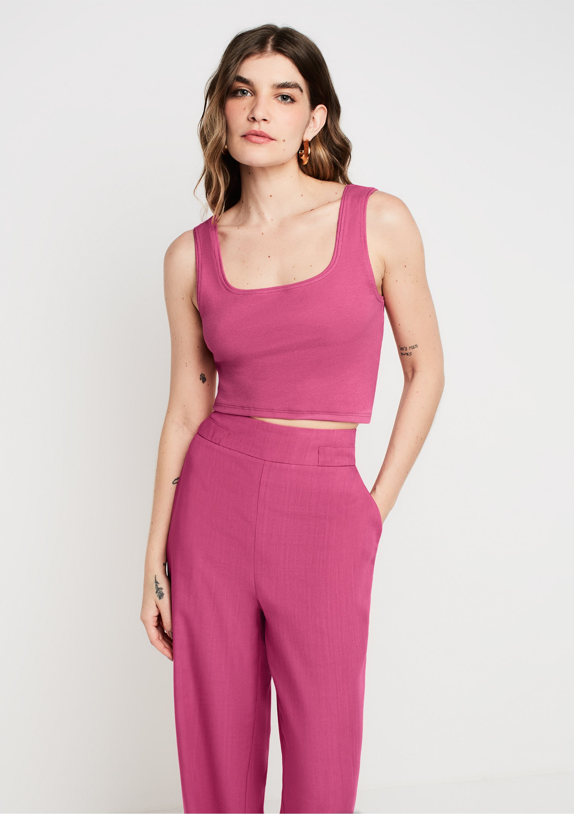 Top Cropped Decote Quadrado Em Algodão Com Elastano - Rosa