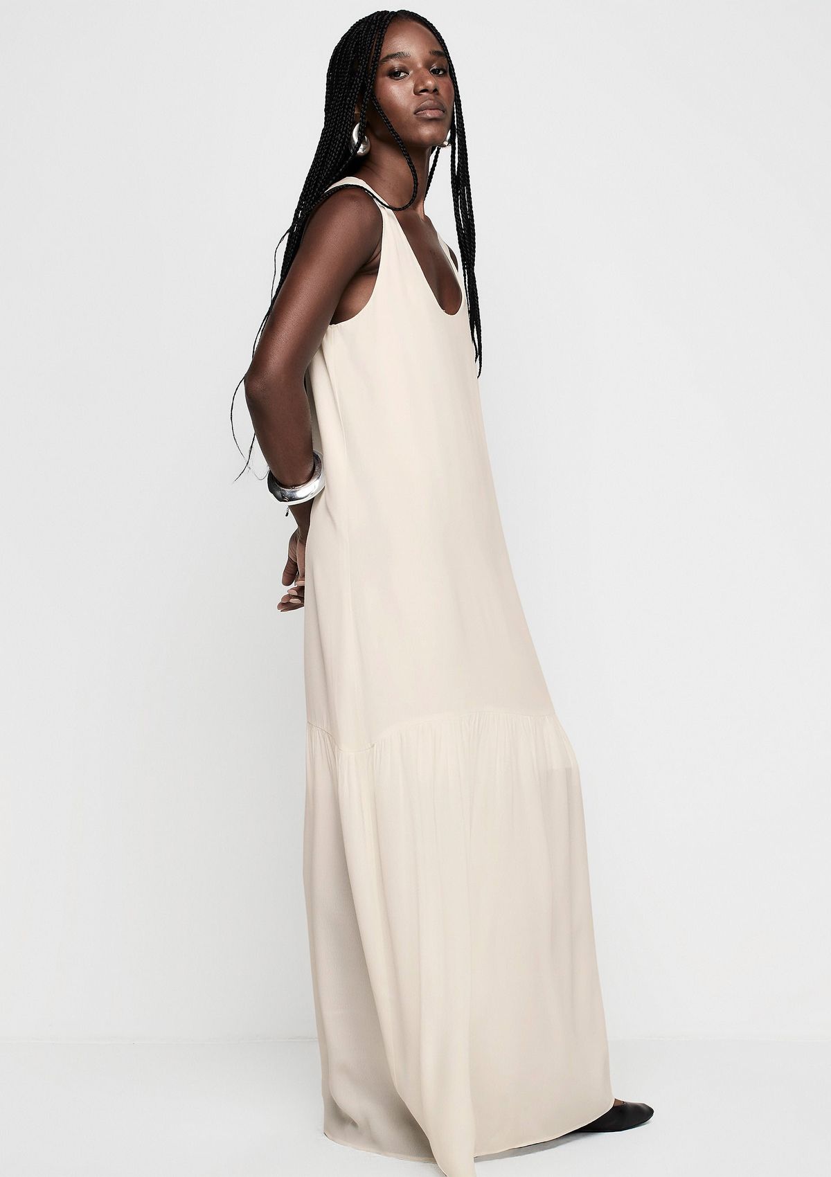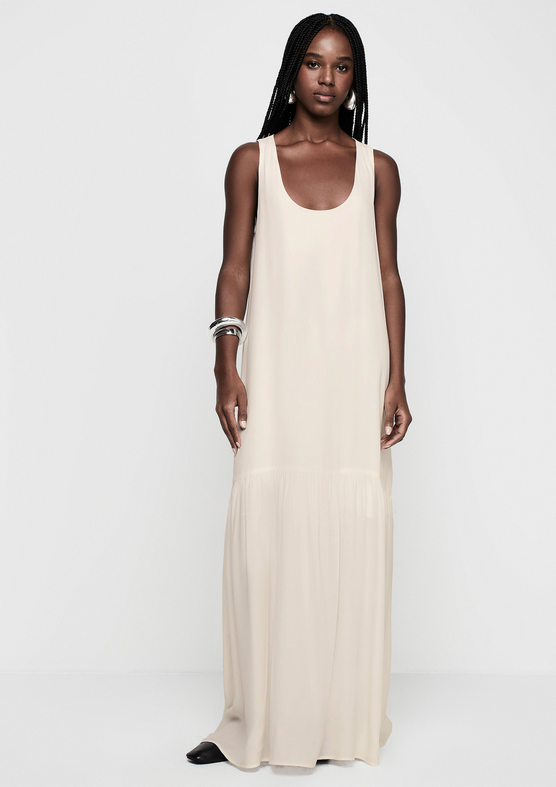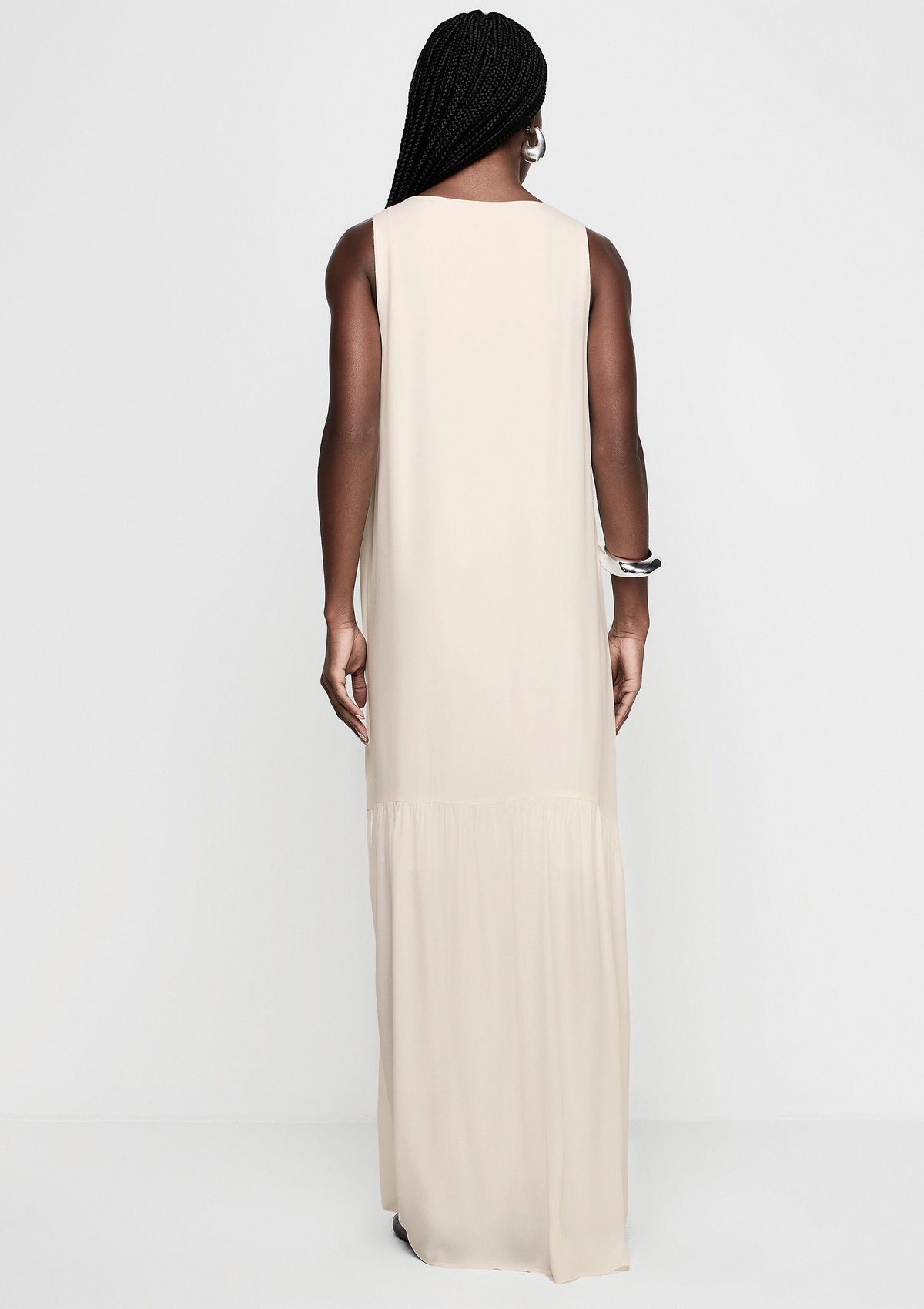 Vestido Longo Decote em U Em Viscose - Bege