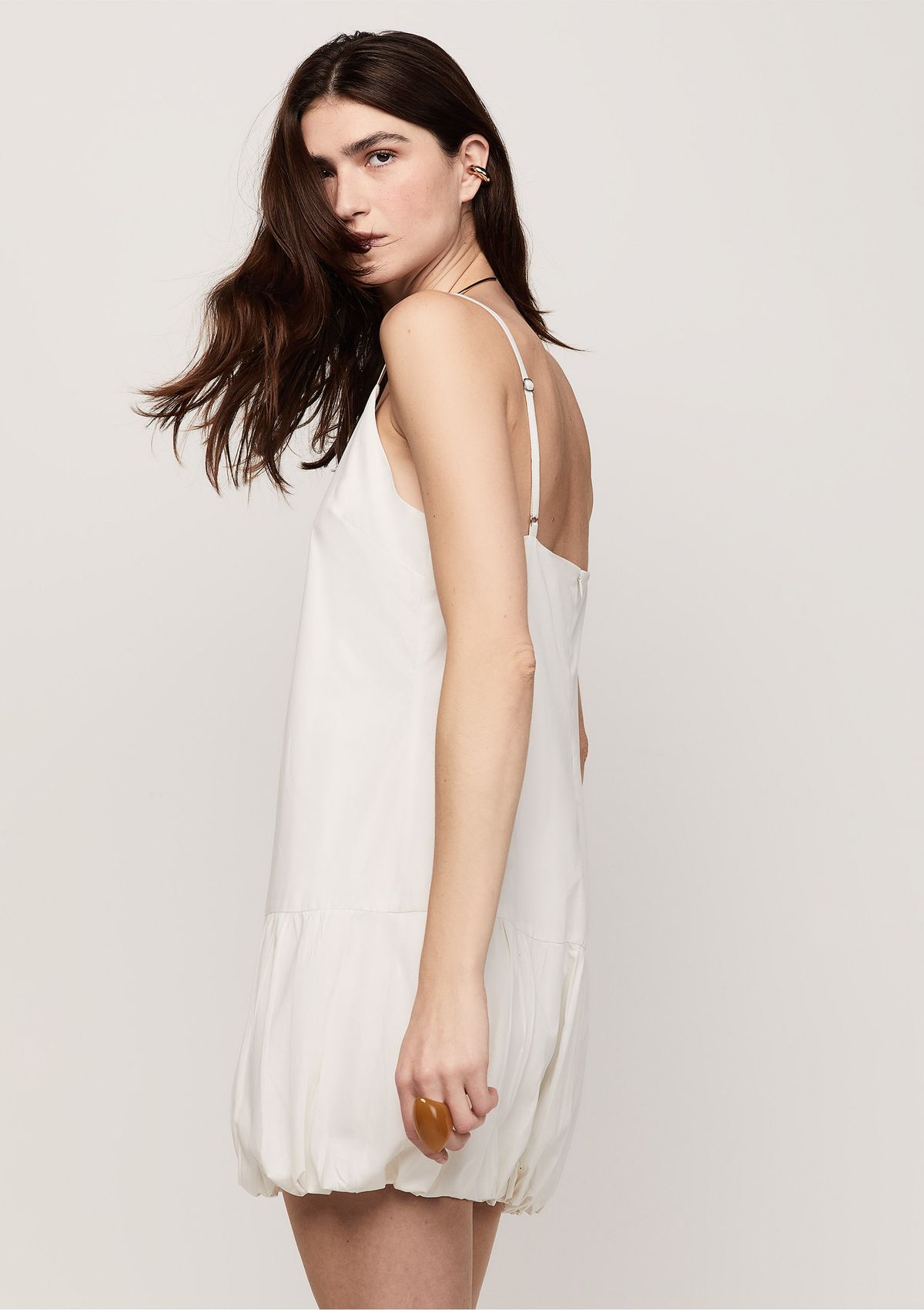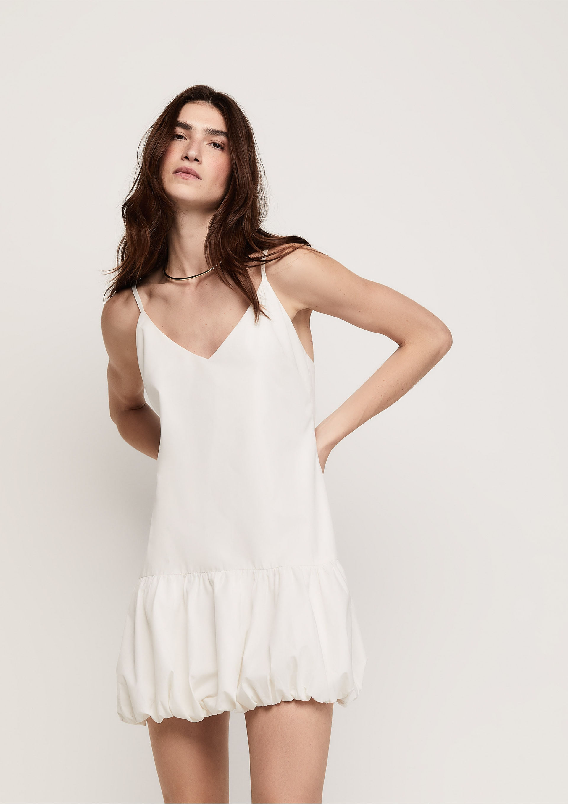 Vestido Tricoline Curto Balonê - Off white